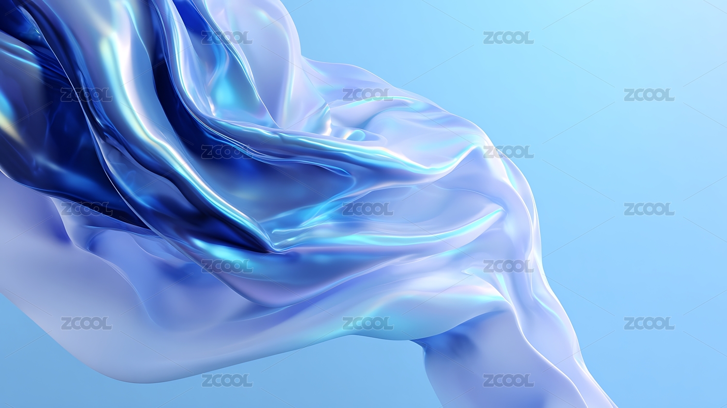 晶莹反射光影起伏波浪流淌透明液体3d插画