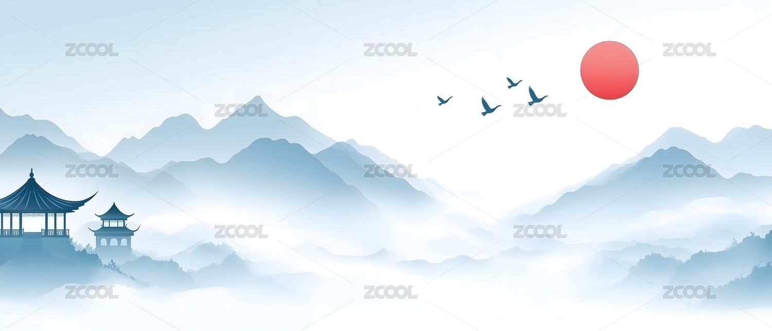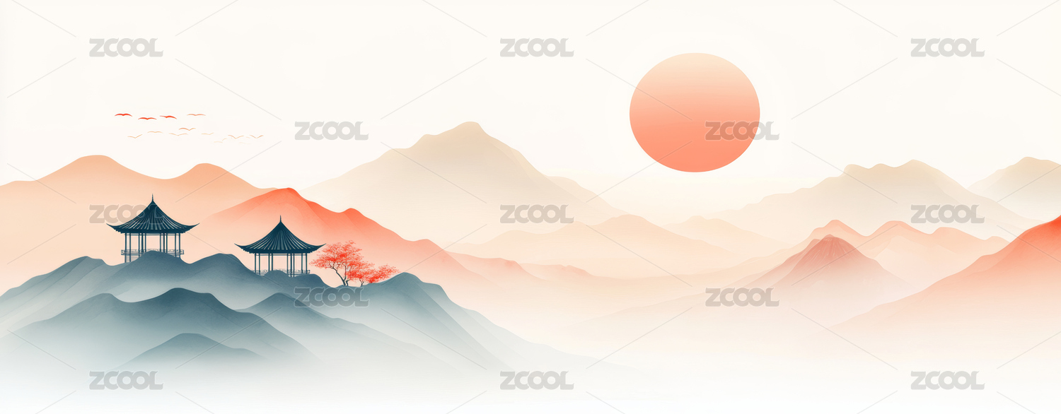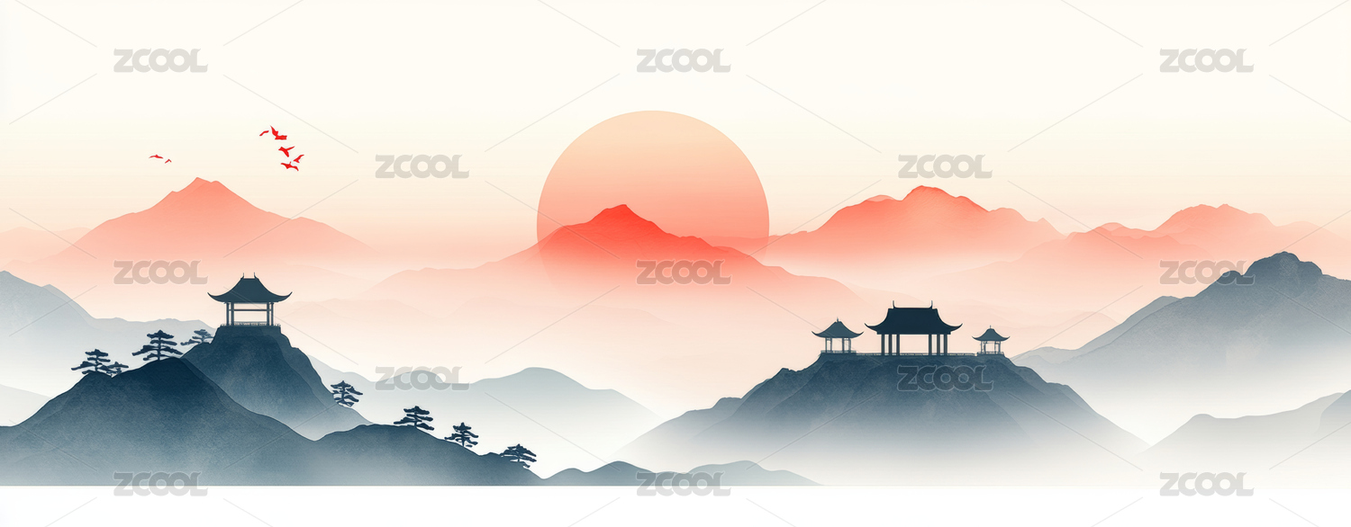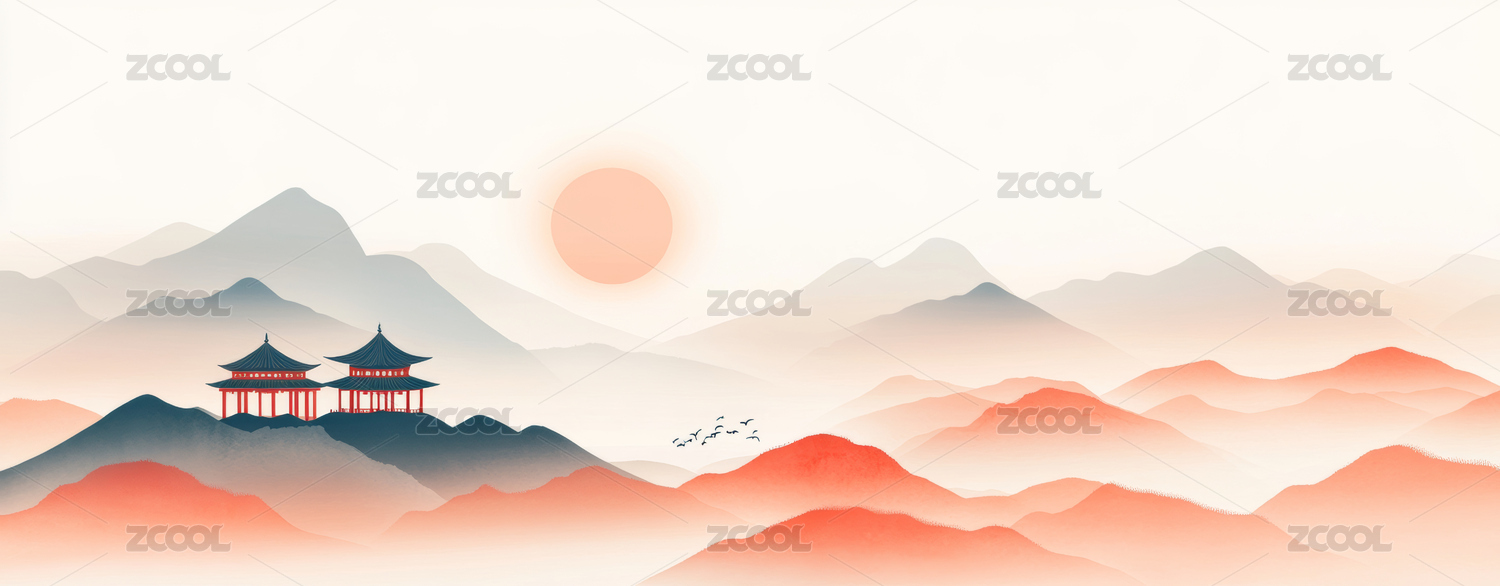 极简,国风,建筑,自然,亭子,亭,秋天,山,云,云海