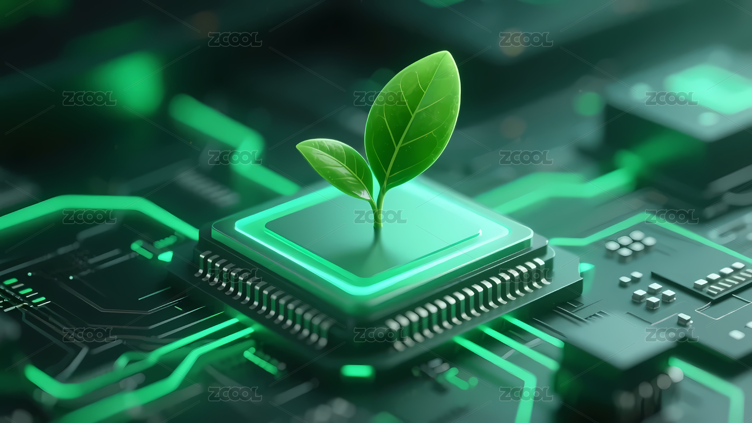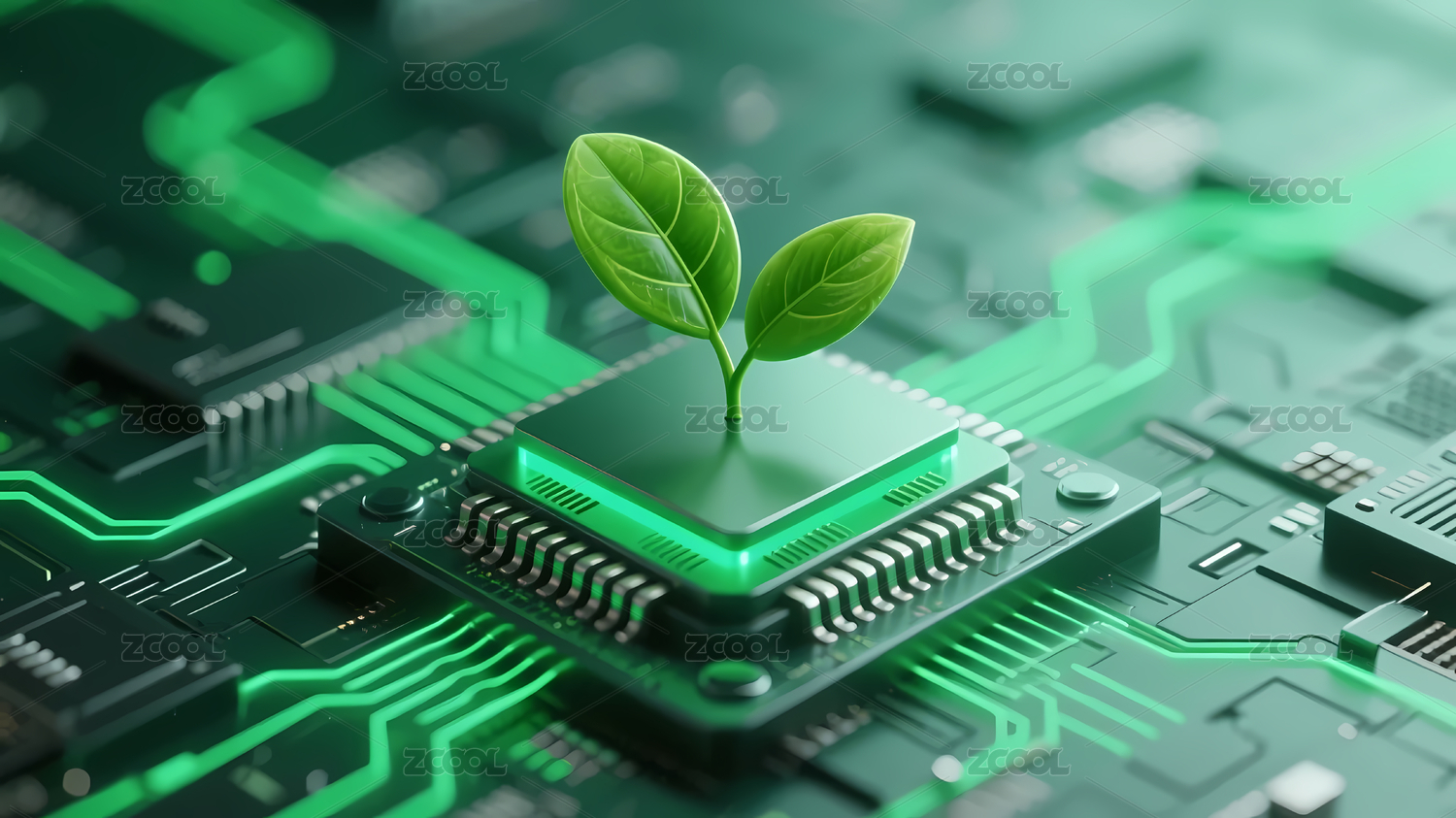 电子芯片上的绿叶