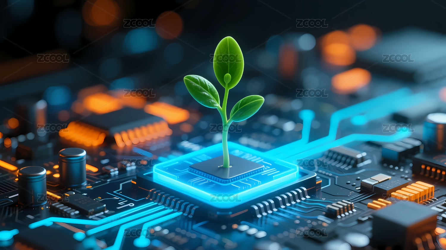 蓝色电路板嫩芽科技自然