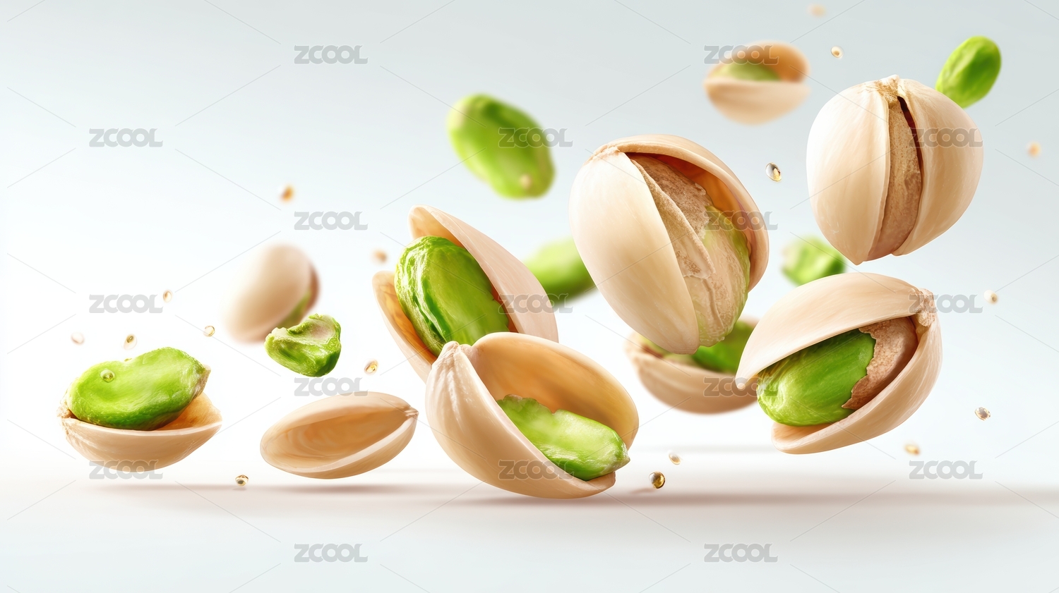 新鲜的开心果在空中跳跃