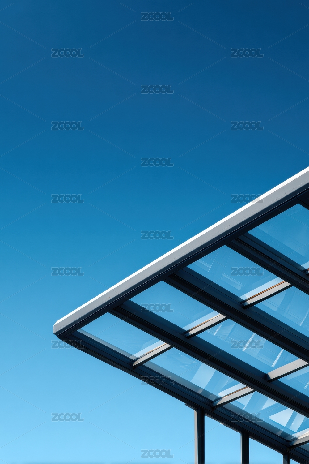 现代建筑的玻璃屋顶与蓝天
