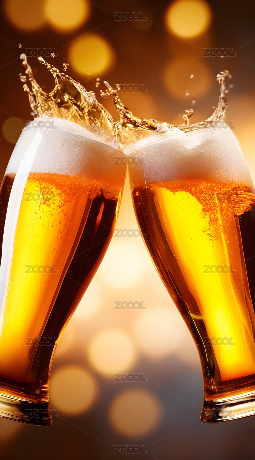 两杯啤酒碰撞的瞬间