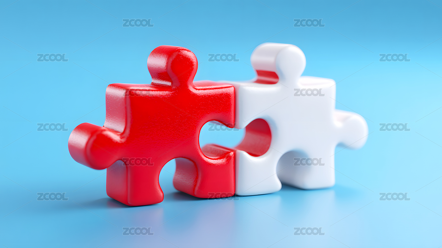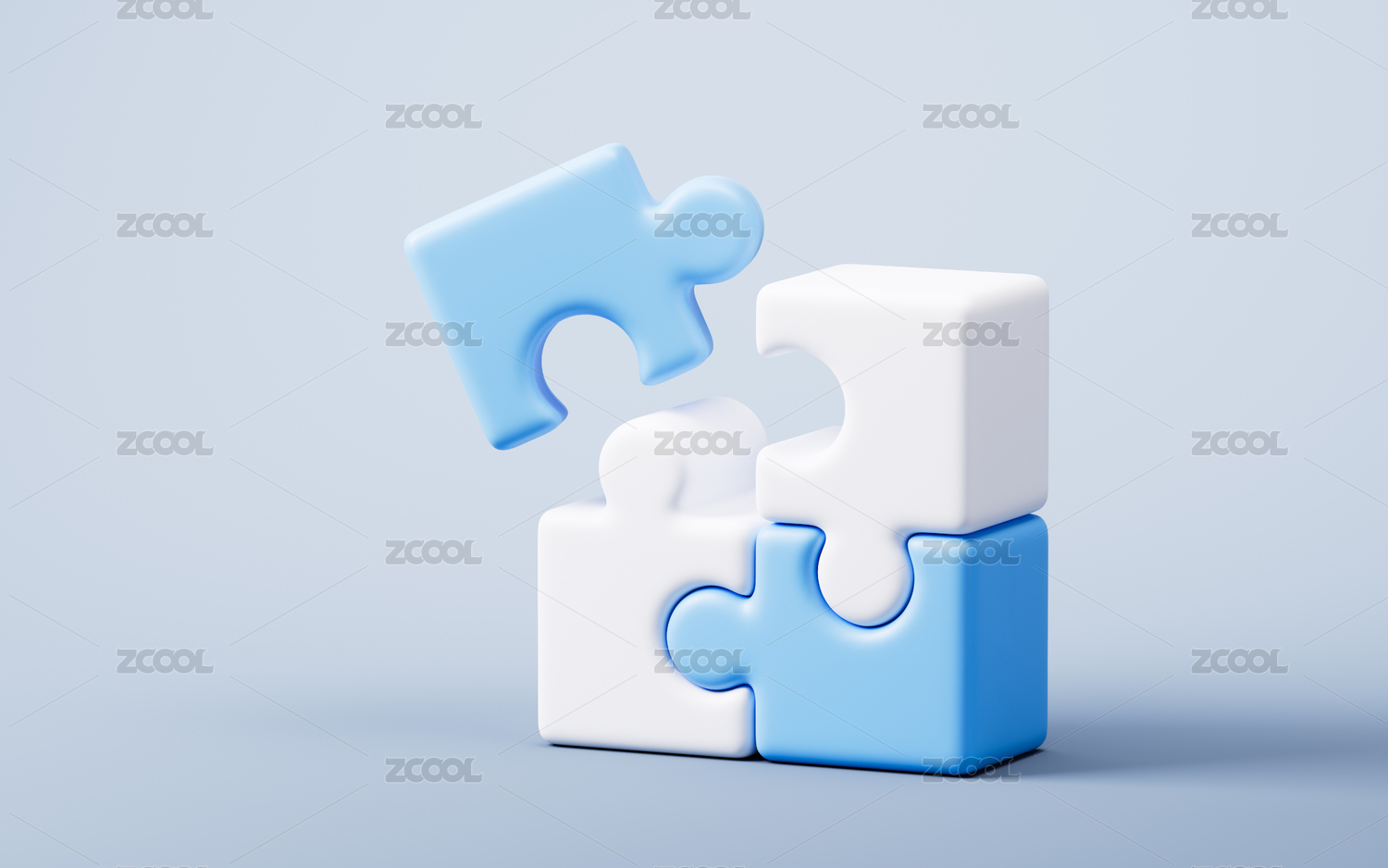 蓝色拼图块嵌入白色拼图中