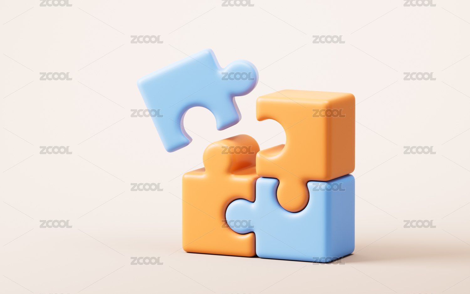 拼图与商务合作概念三维渲染