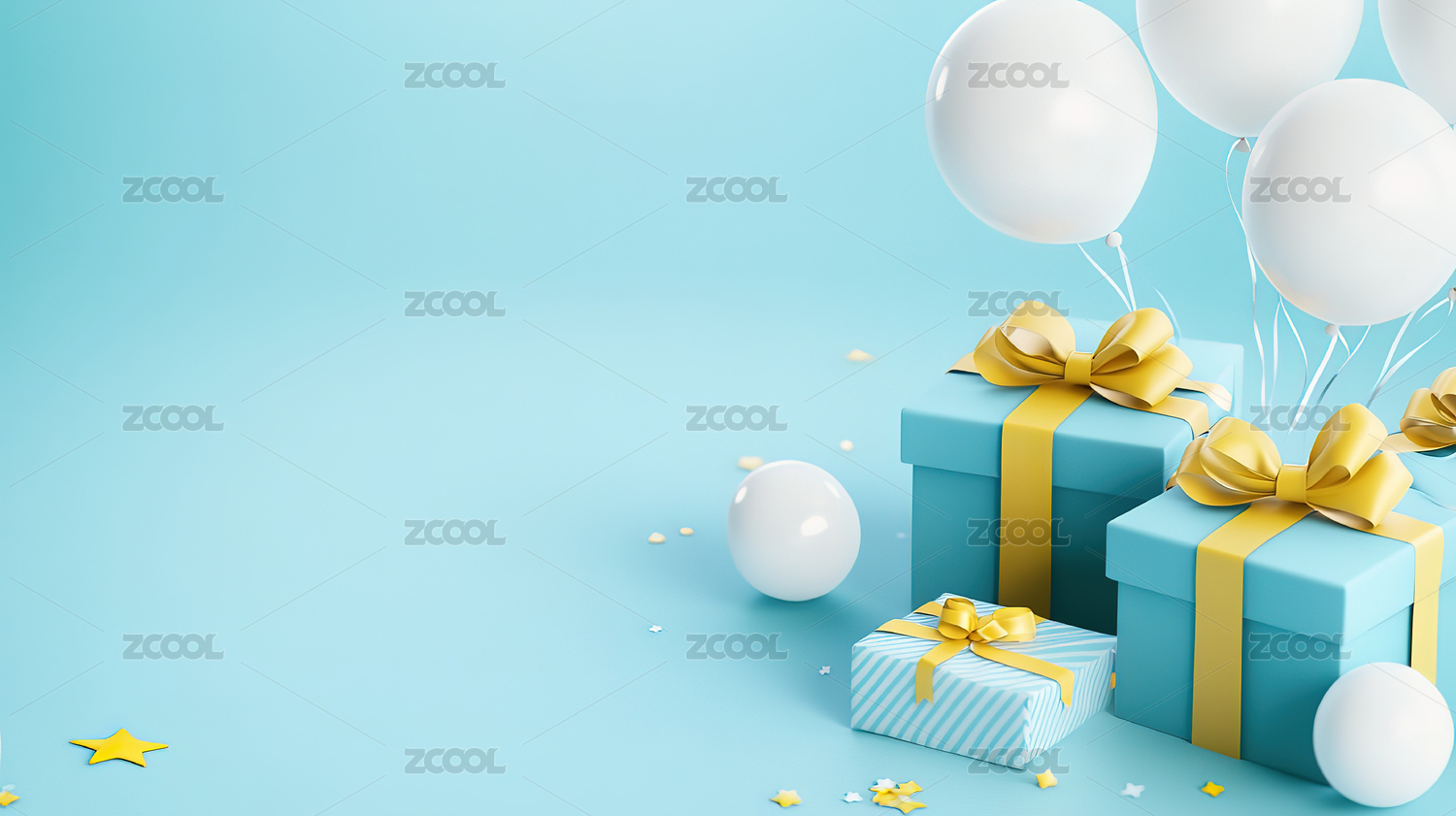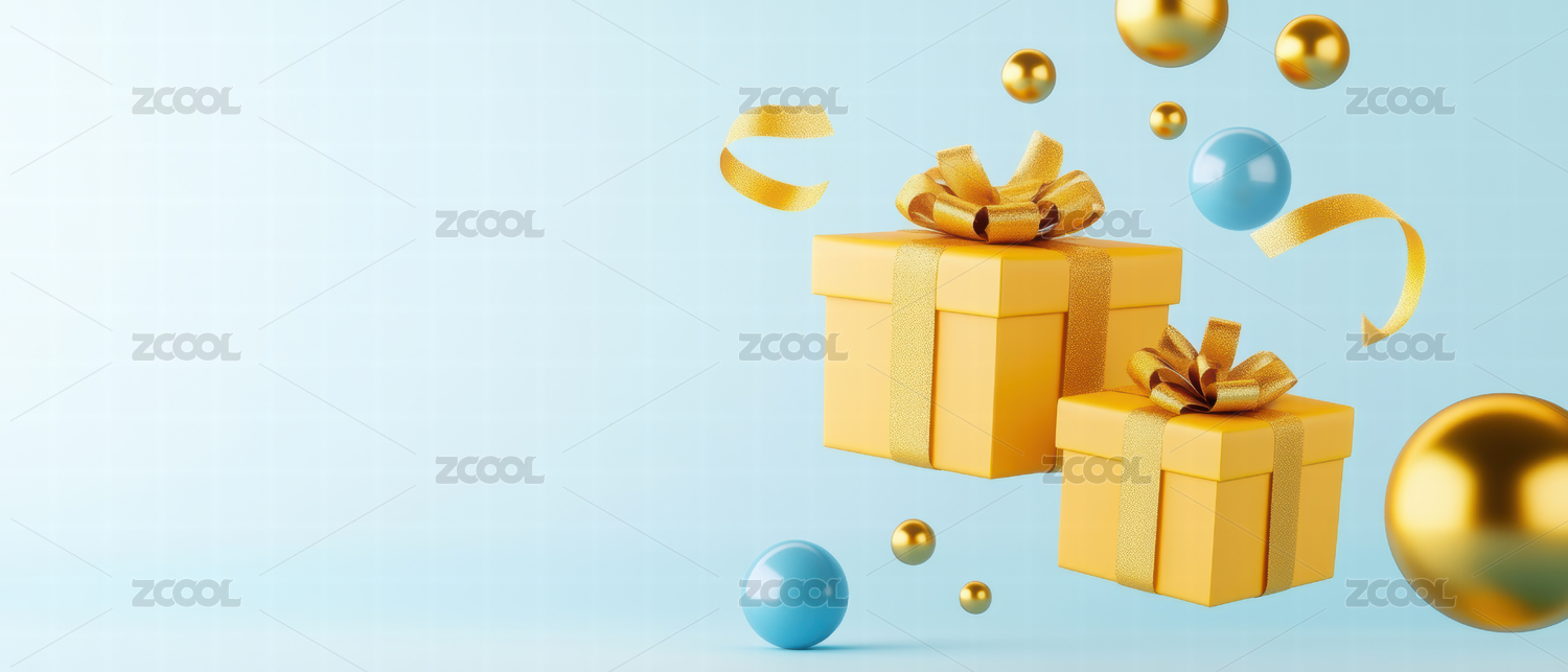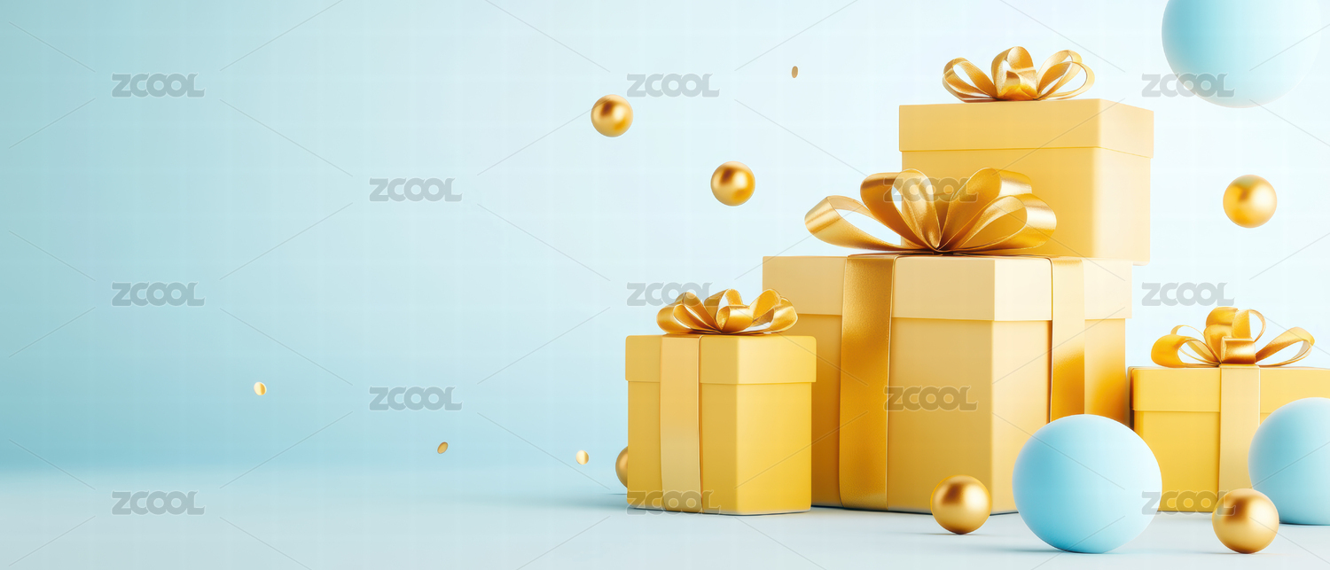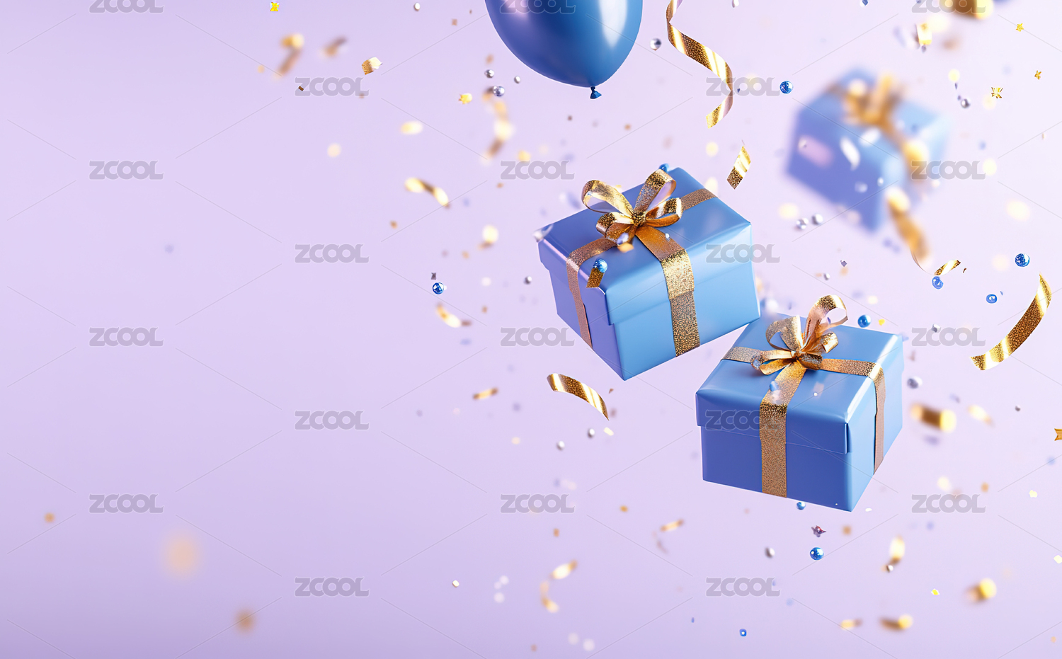 背景,蓝色,装饰,立体,金色,盒子,礼物,气球,蝴蝶结,庆祝