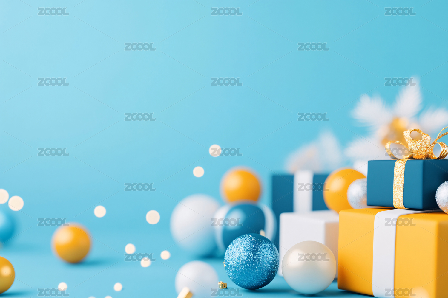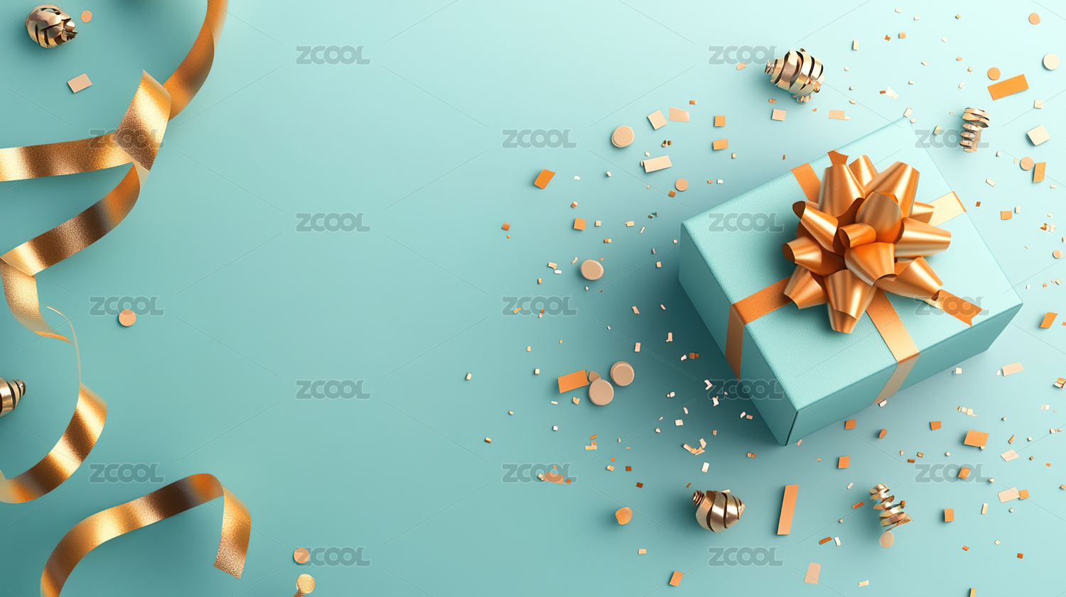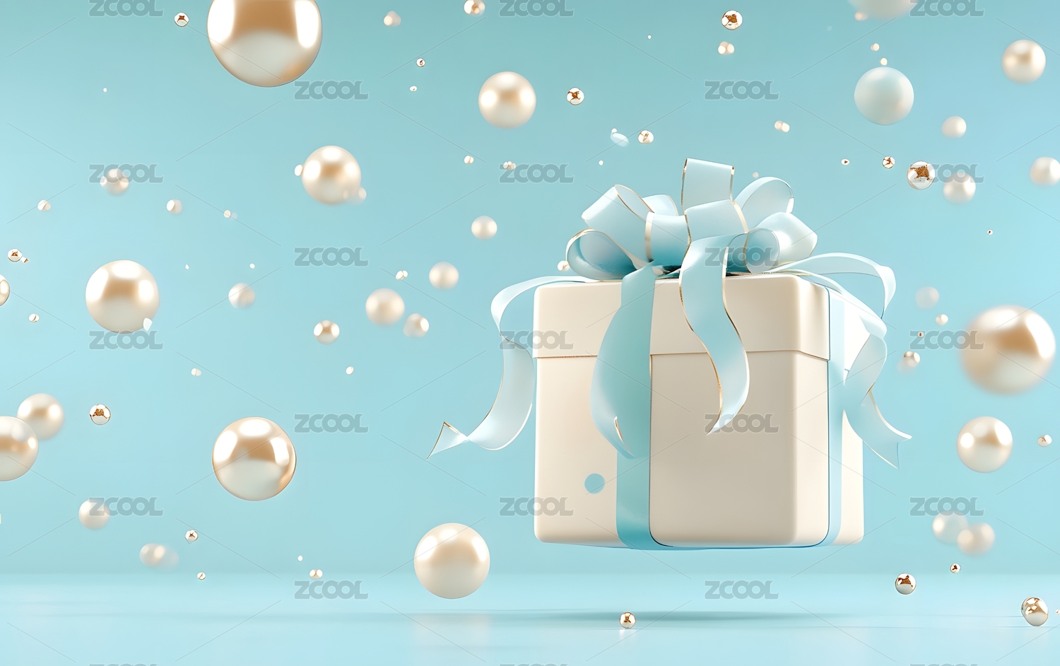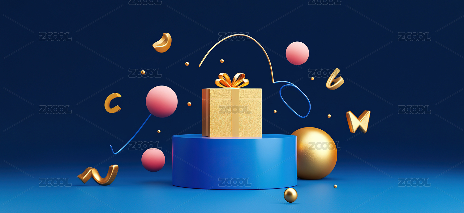 背景,蓝色,装饰,立体,金色,盒子,礼物,气球,蝴蝶结,庆祝