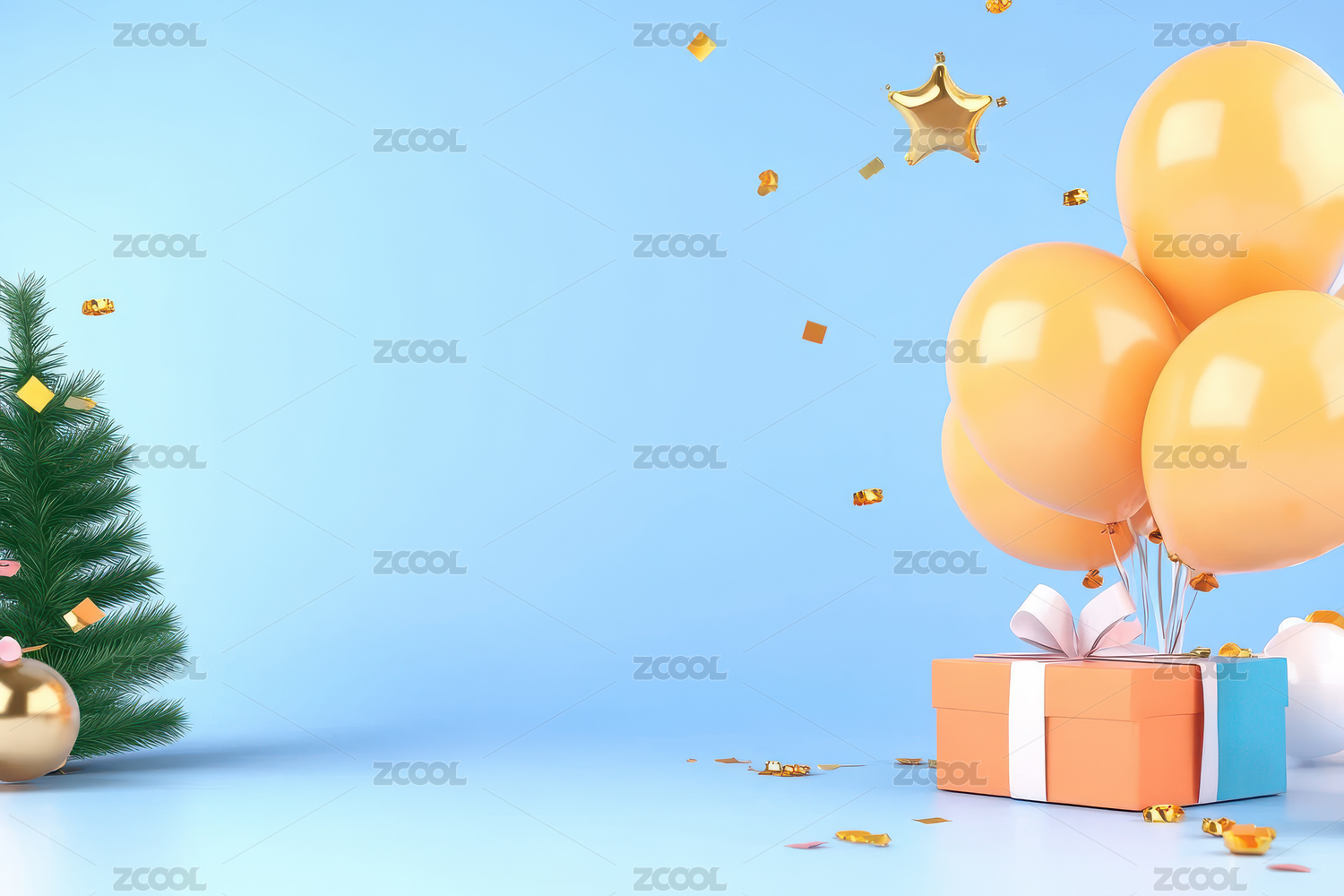 节日气球礼盒周年纪念日生日快乐3D渲染