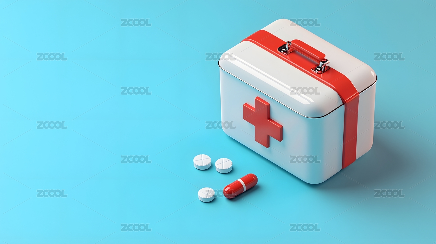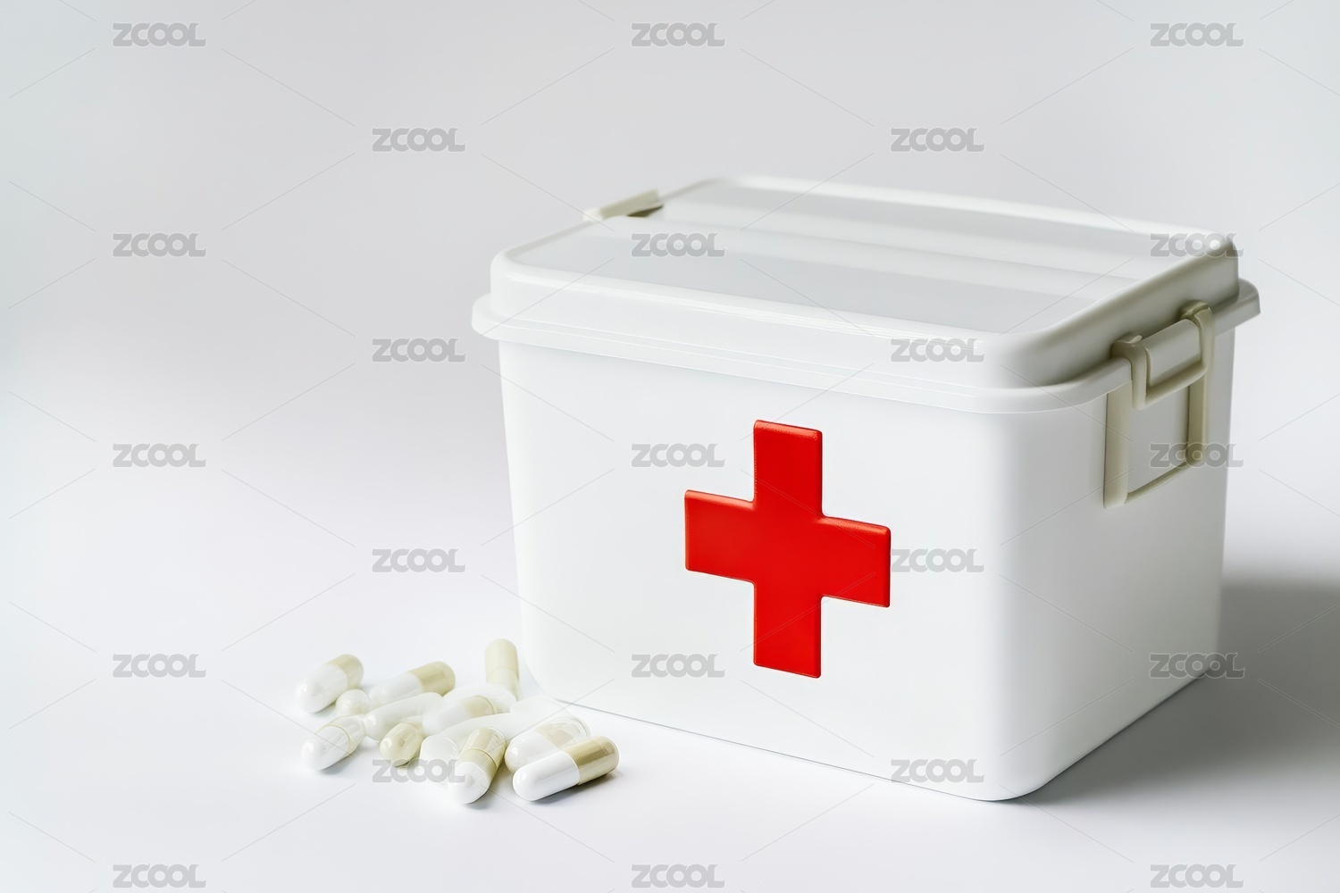 白色,急救箱,散落,药片,医疗,用品,健康,安全,急救,治疗