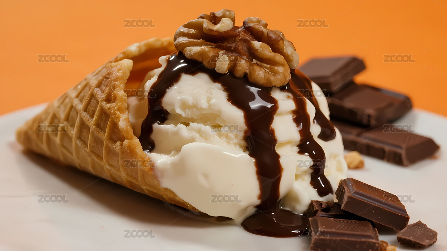 背景,橙色,巧克力,碎片,甜品,食物,冰淇淋,蛋筒,核桃,覆盖