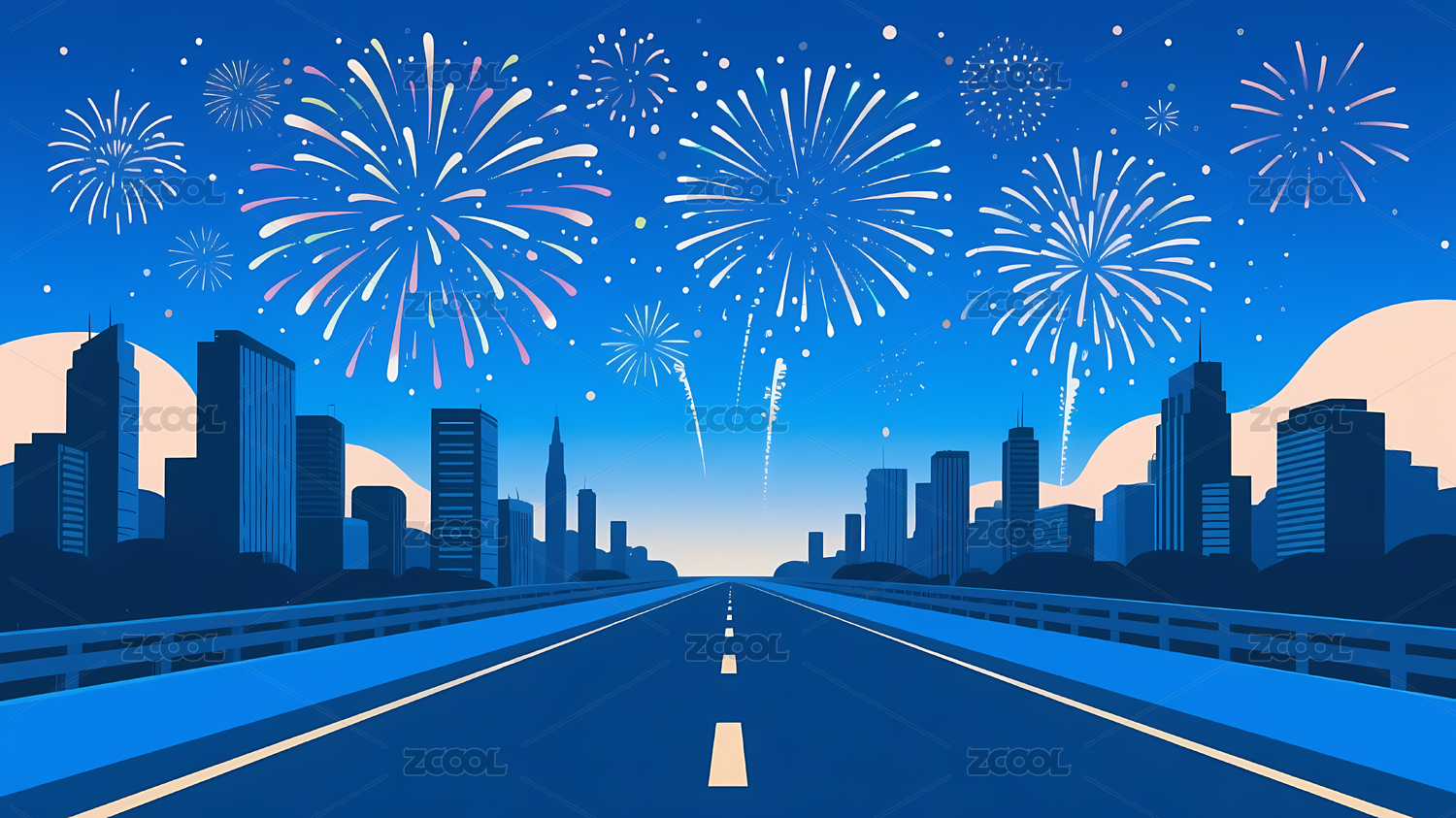 蓝色,背景,城市,建筑,烟花,天空,天际线,夜空,公路,远方