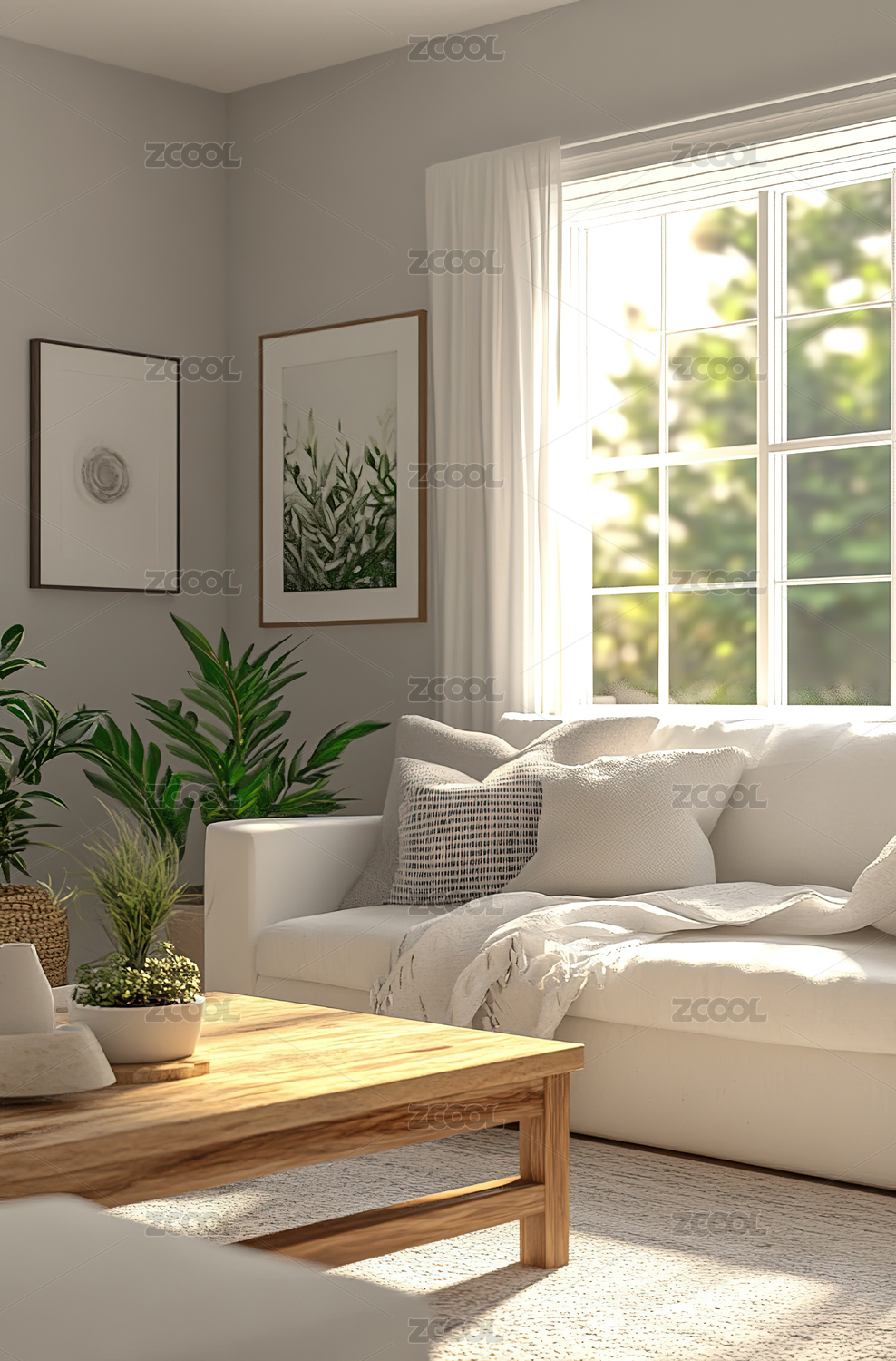 明亮 airy 室内客厅与自然元素