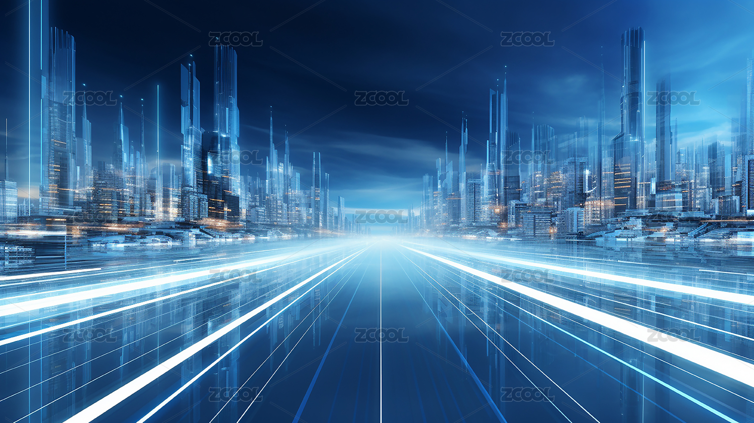 天空,现代,科技,建筑,景观,城市,夜景,光束,高楼,街道