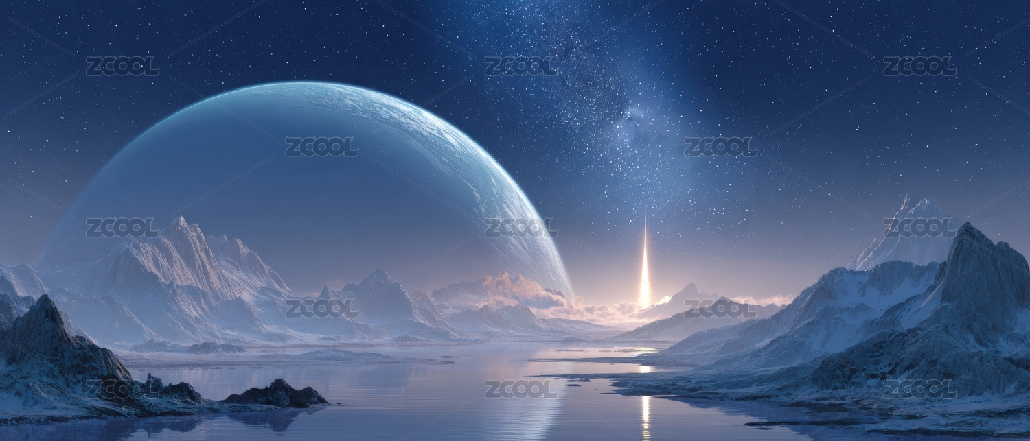 神秘星球与银河的壮丽景象