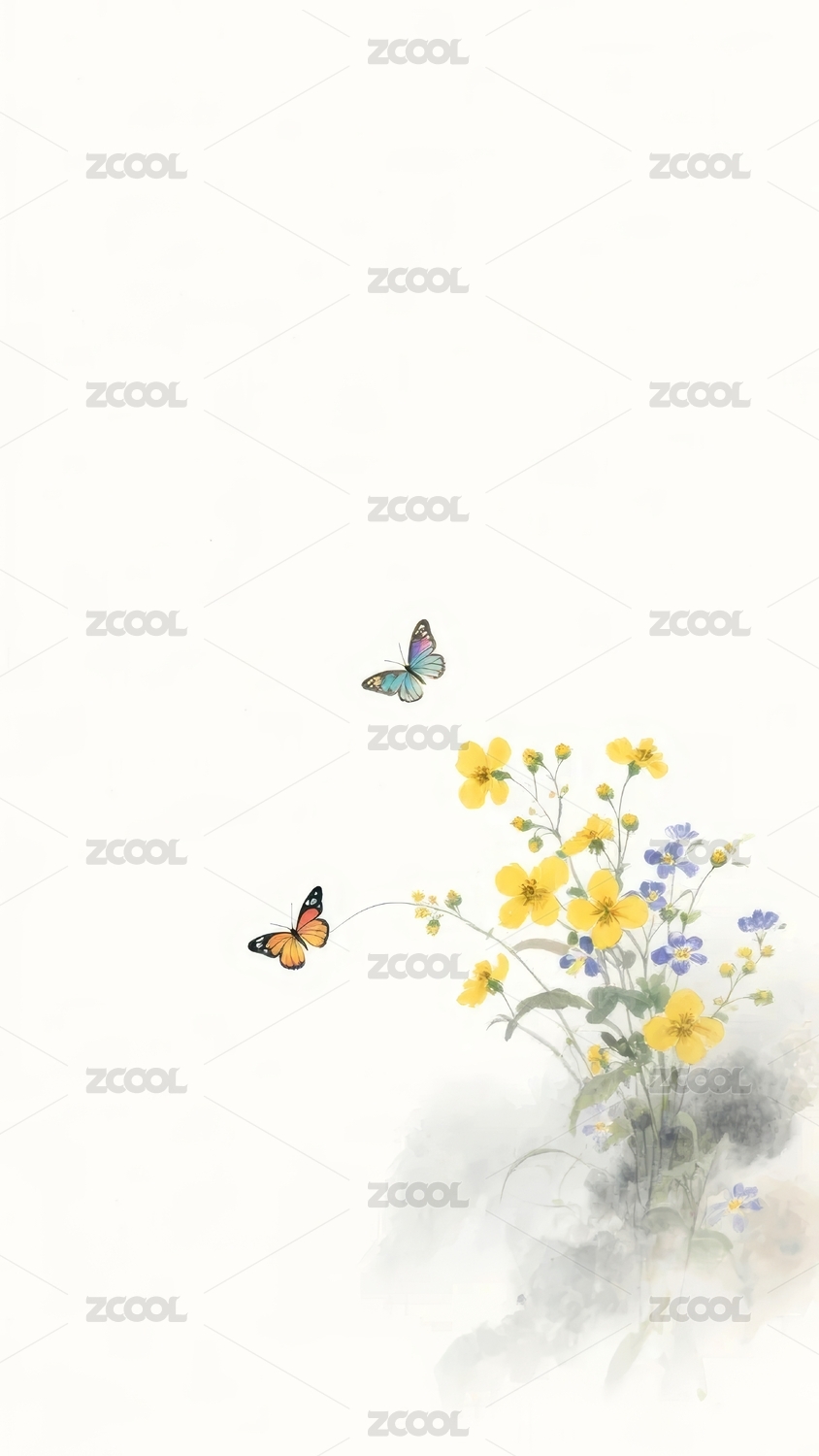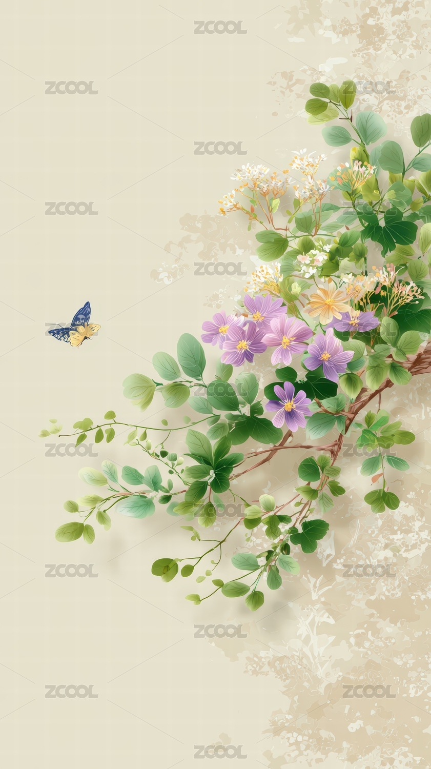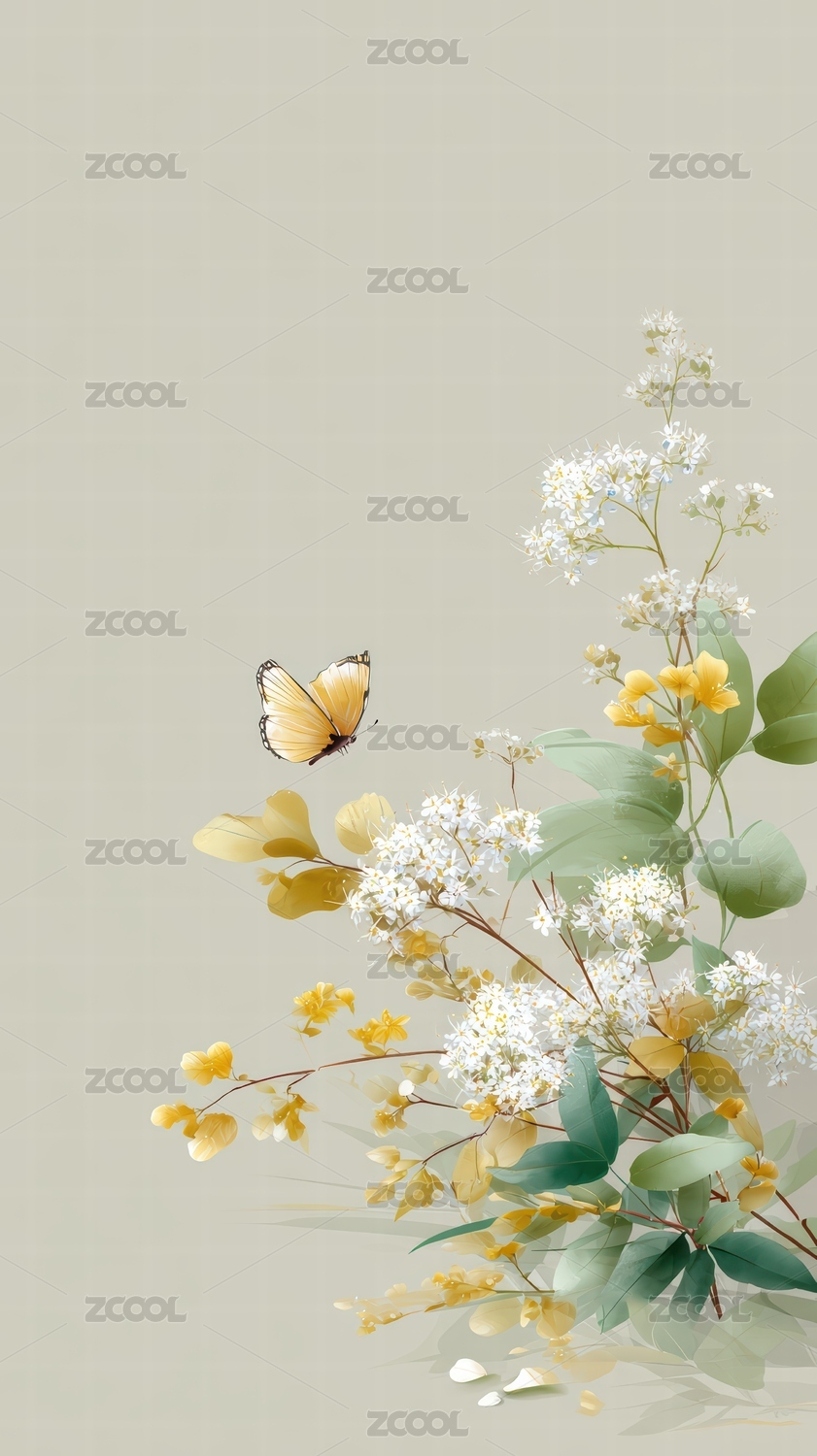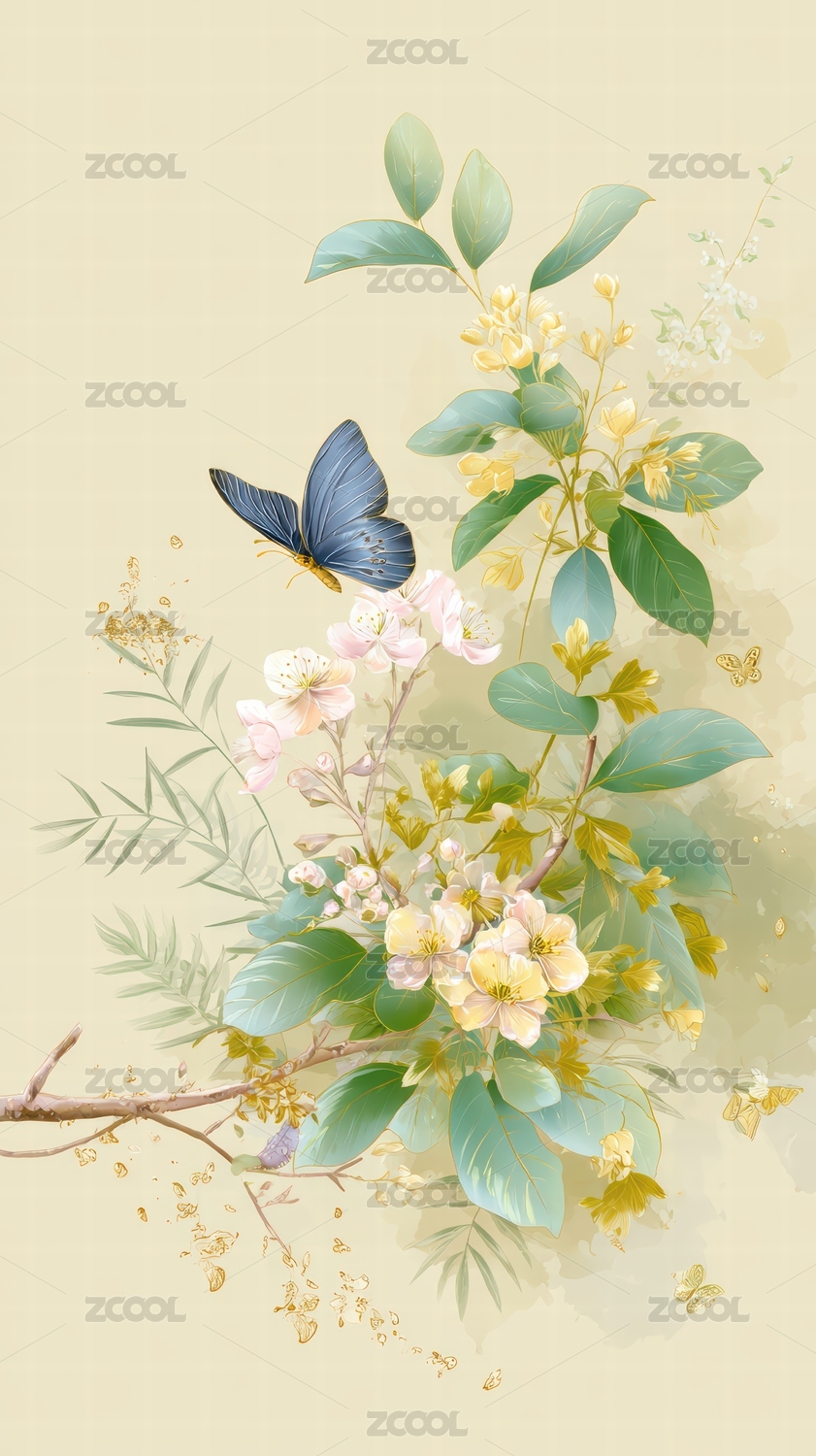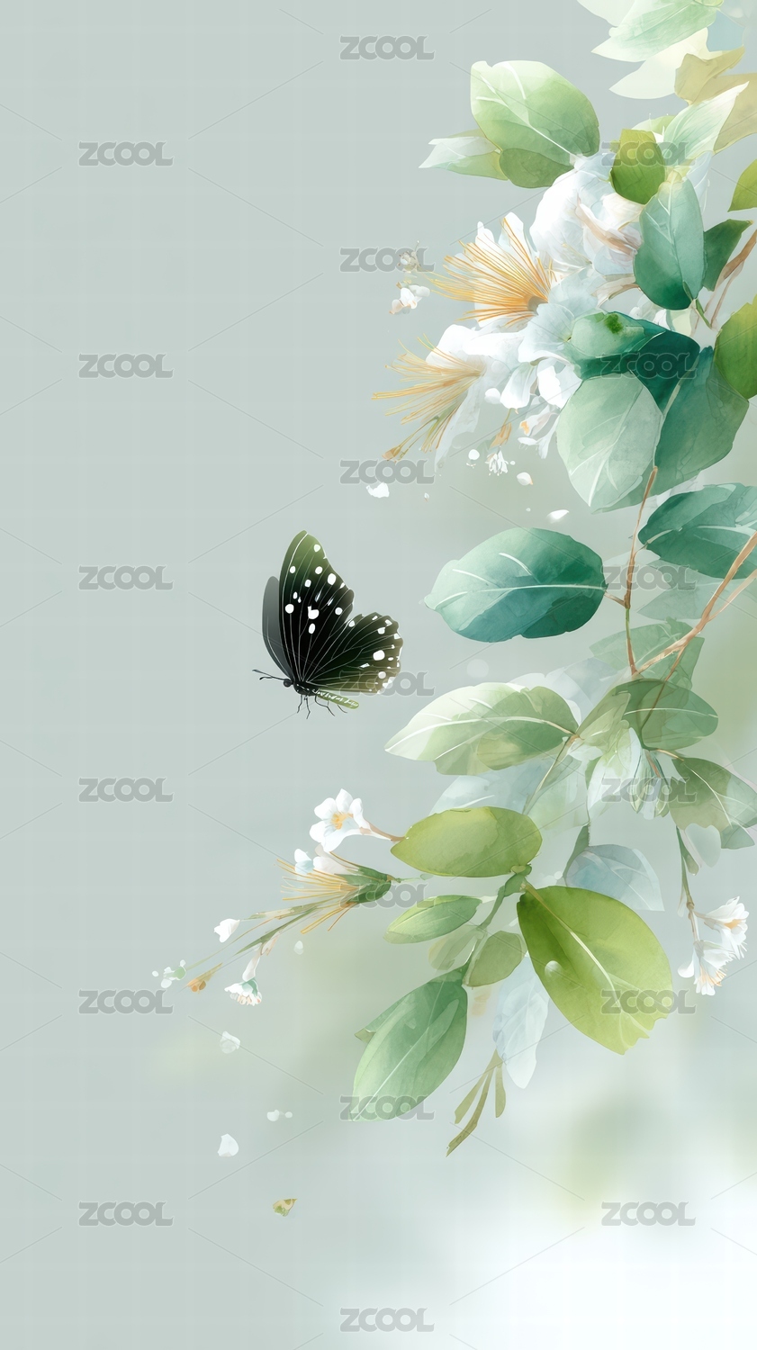 优雅,细腻,自然,绿叶,蝴蝶,白花,黑蝶,花枝