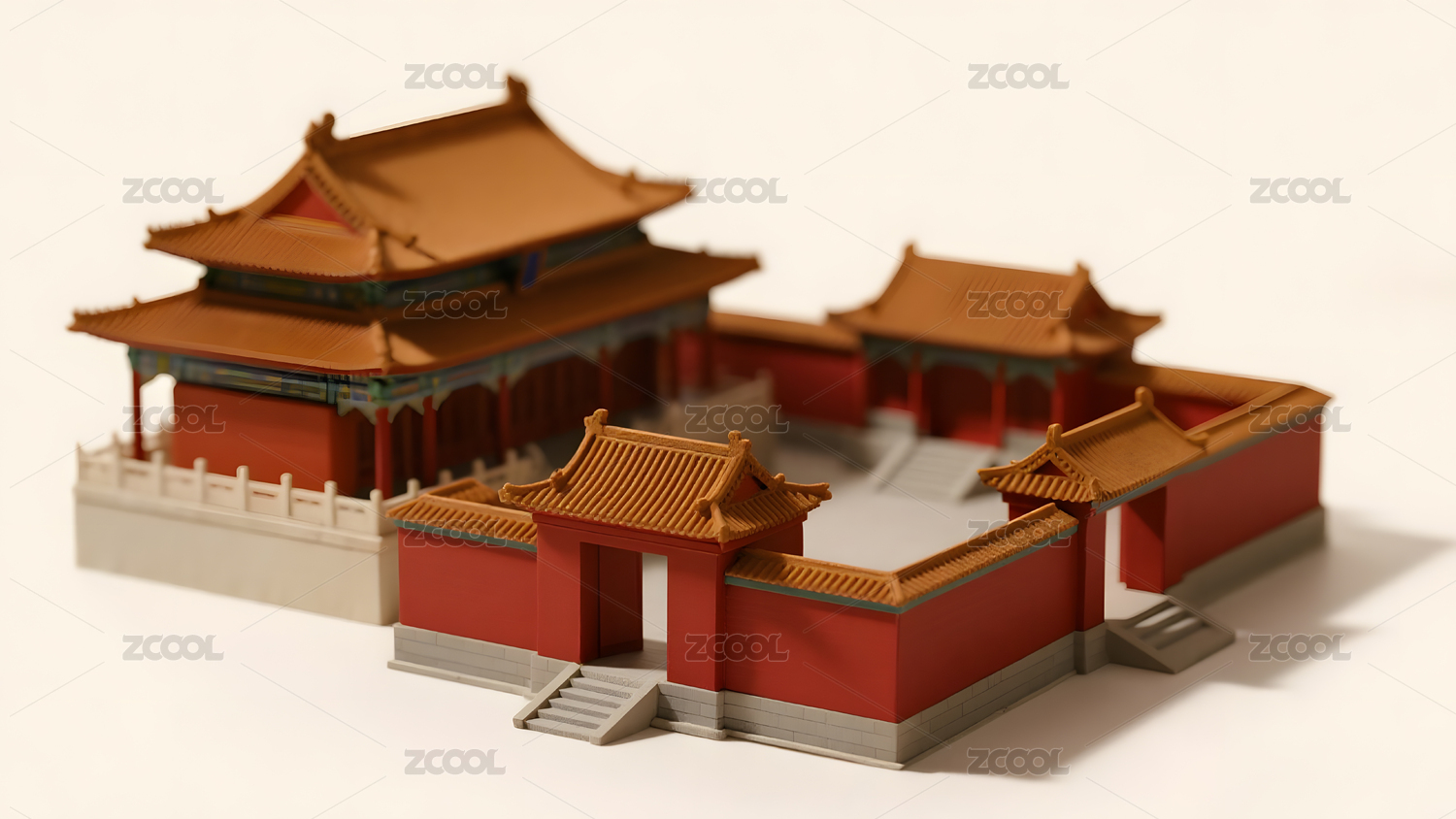 国潮,建筑,场景,背景,商务,节日,古风,亭台楼阁,红色,新年