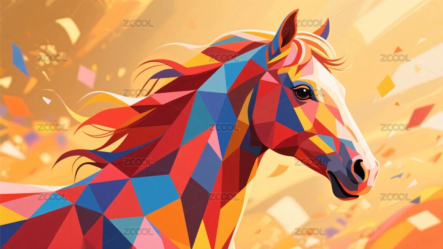 马头,色彩,斑斓,侧面,艺术,插画,抽象,背景,黄色,鬃毛