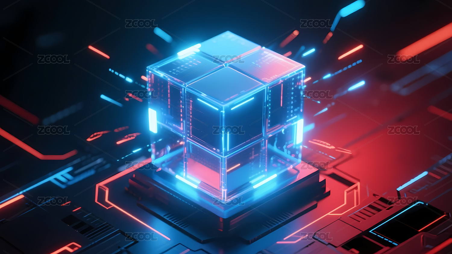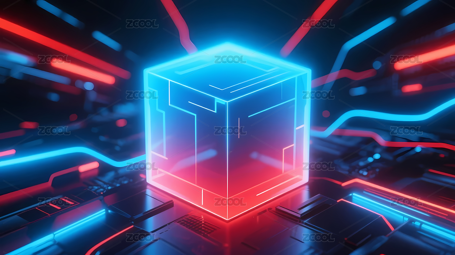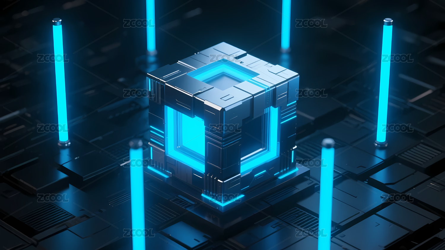 蓝色,背景,发光,科技,未来,橙色,黑色,立方体,环形,空间