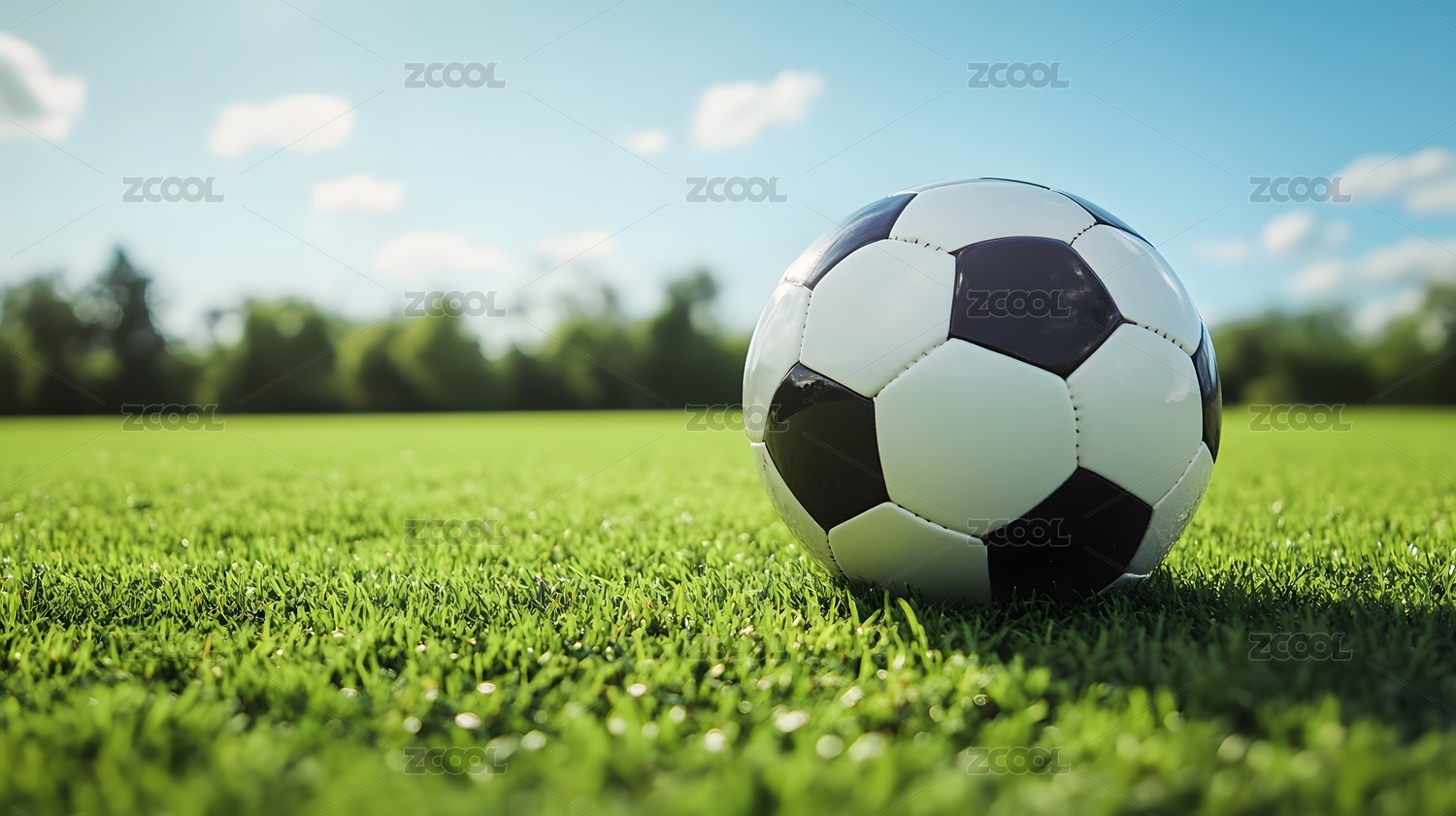 背景,绿色,自然,蓝天,户外,草地,足球,黑白,白云,运动
