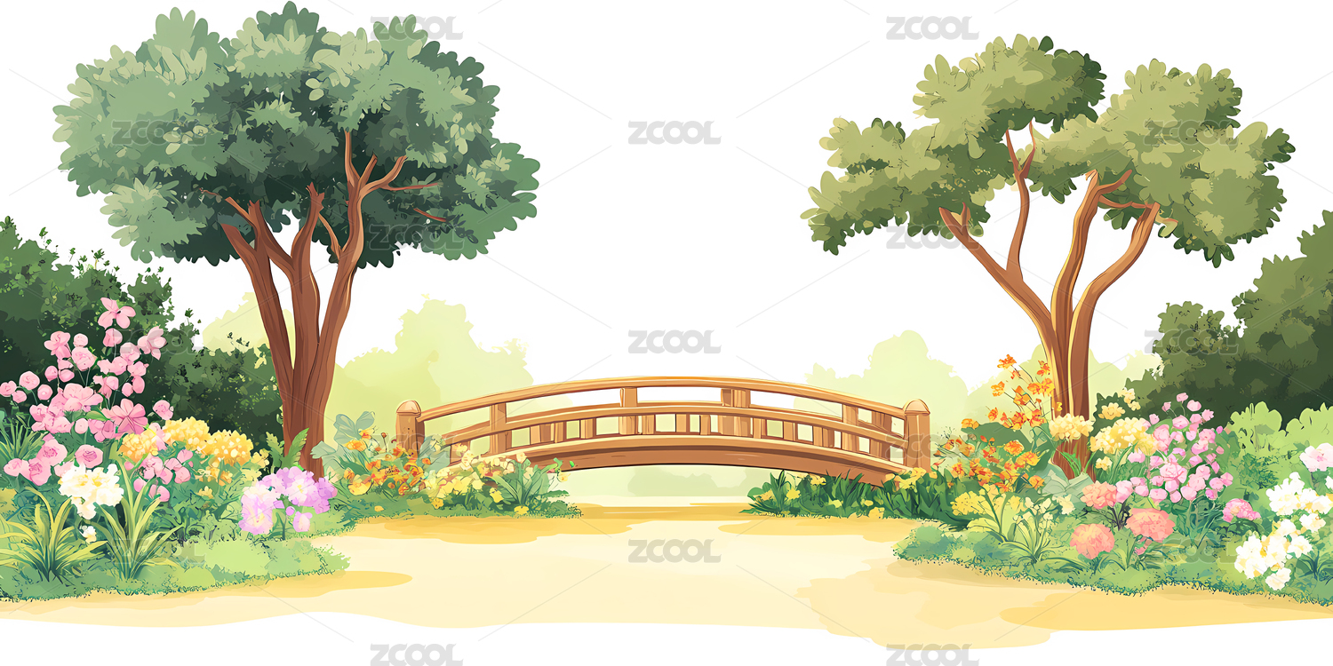 小桥,流水,绿树,田园,风光,木桥,河流,石头,花草,树木