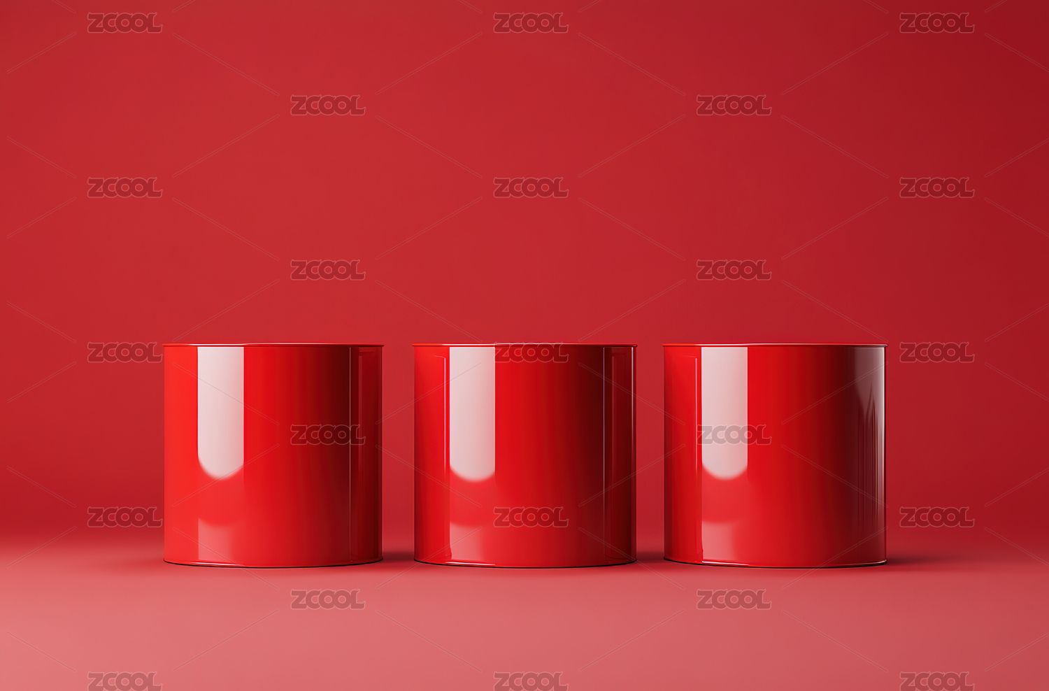 三个红色圆柱体静物