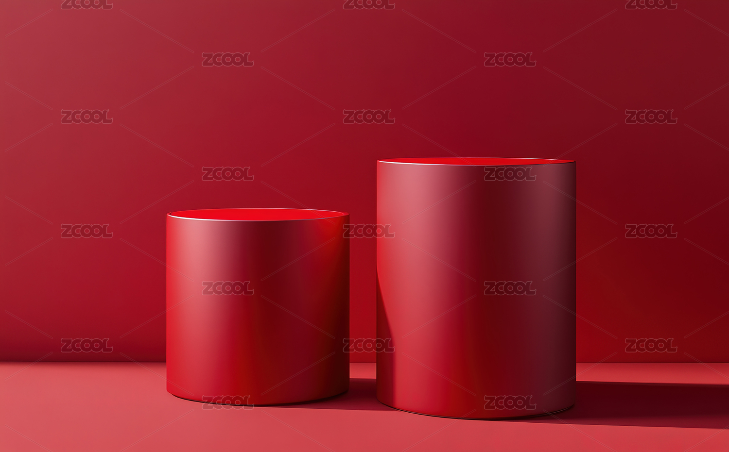 红色背景下的两个圆柱体