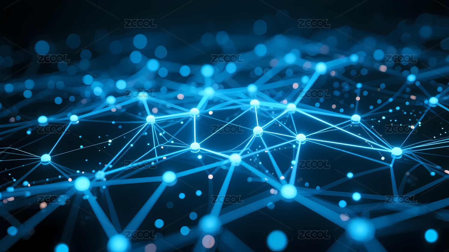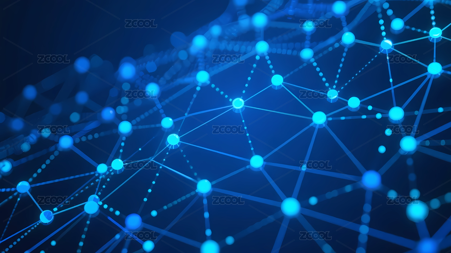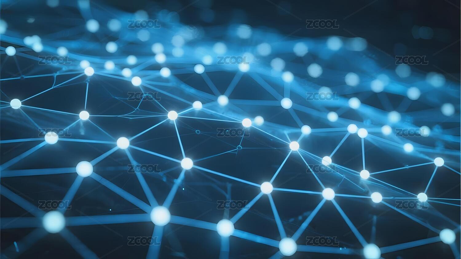 蓝色网络结构发光节点