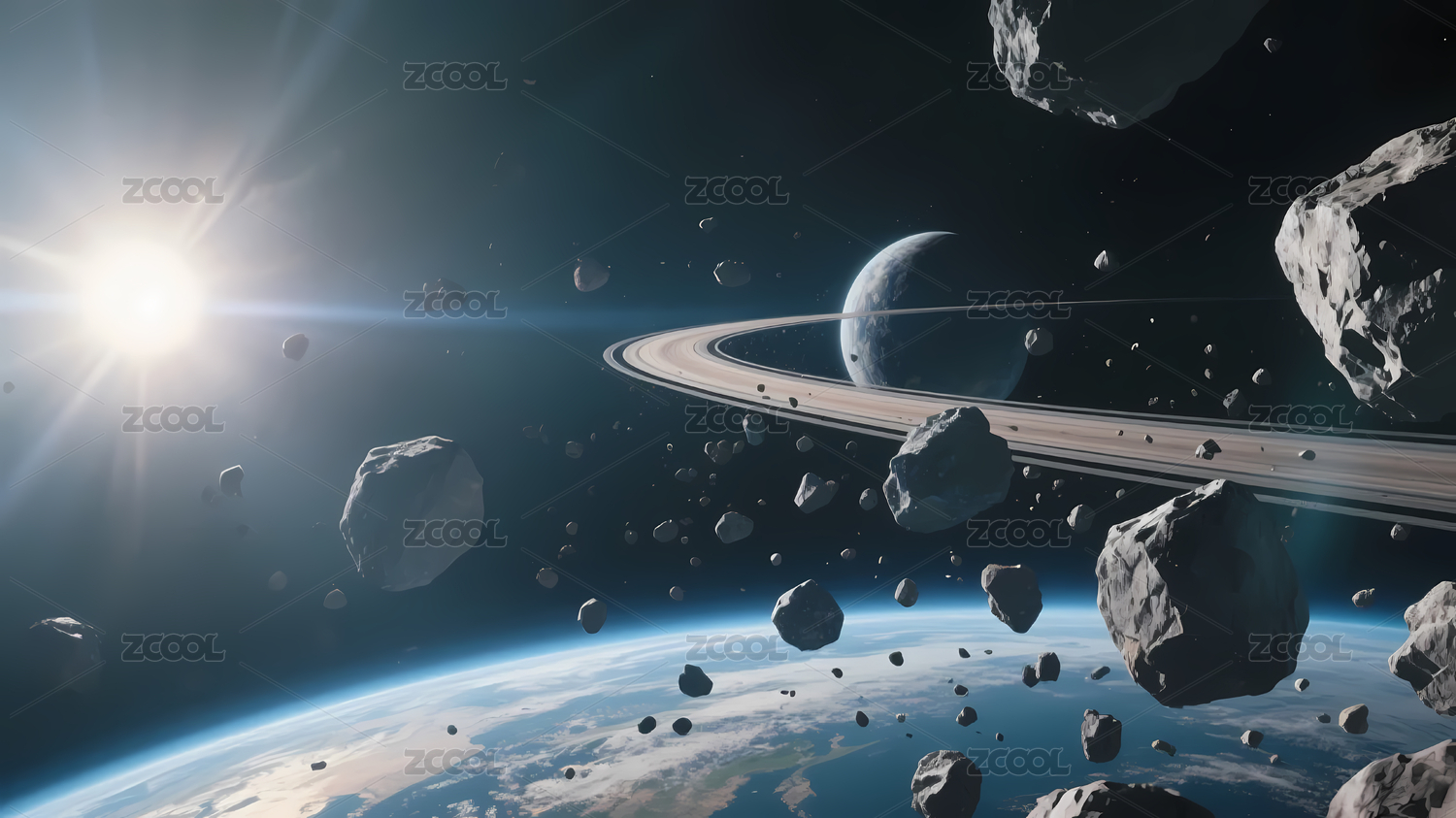 蓝色,宇宙,星空,灰色,飞行器,轨道,地球,太阳,陨石,太空