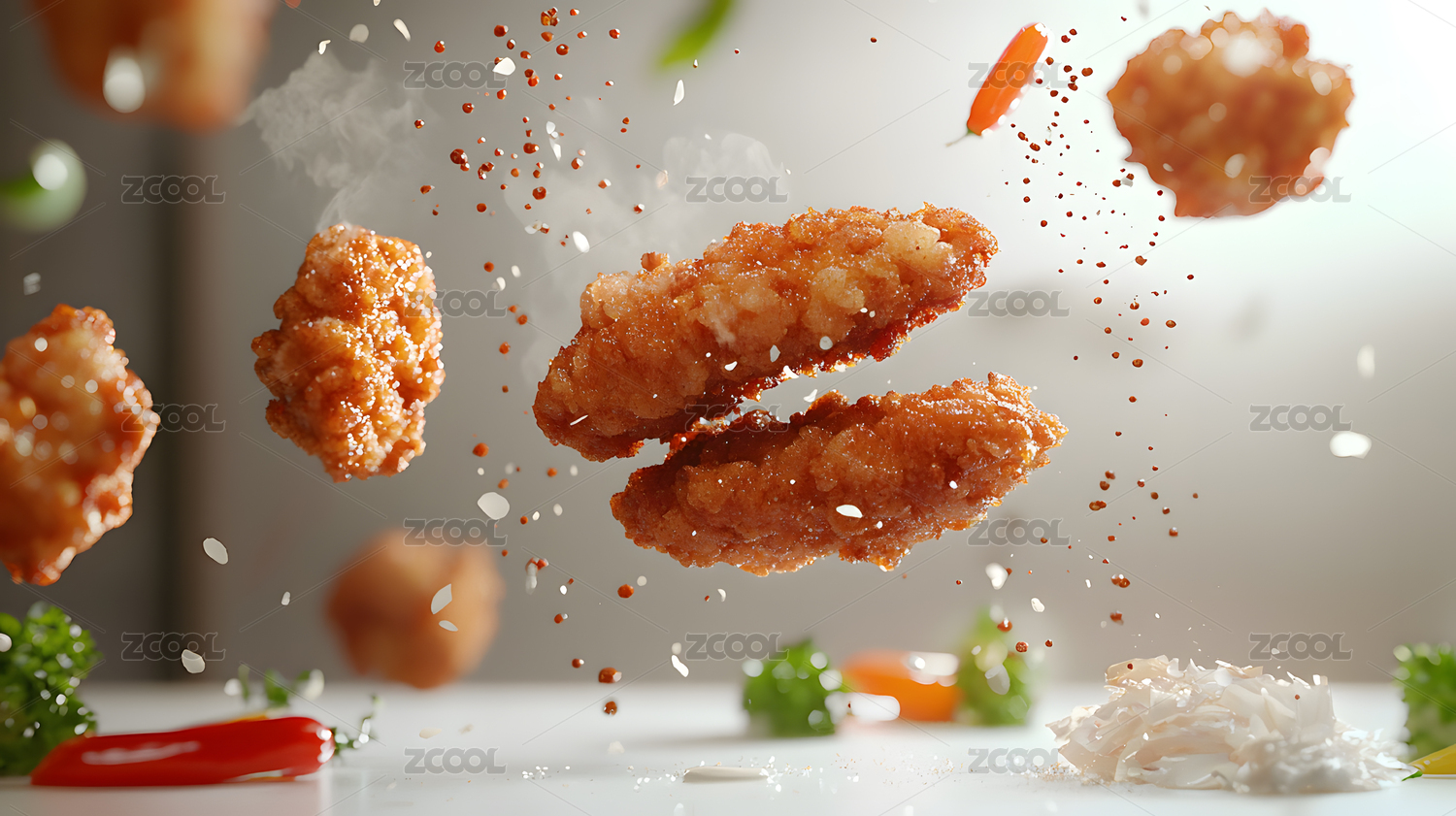 炸鸡块断裂瞬间酥脆纹理清晰可见