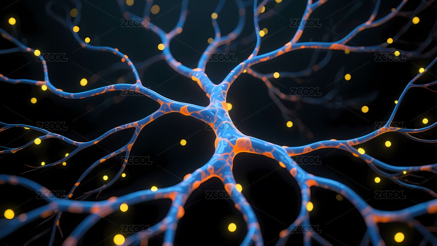 背景,深蓝,蓝色,未来,科技,医学,细胞,模糊,橙色,神经元