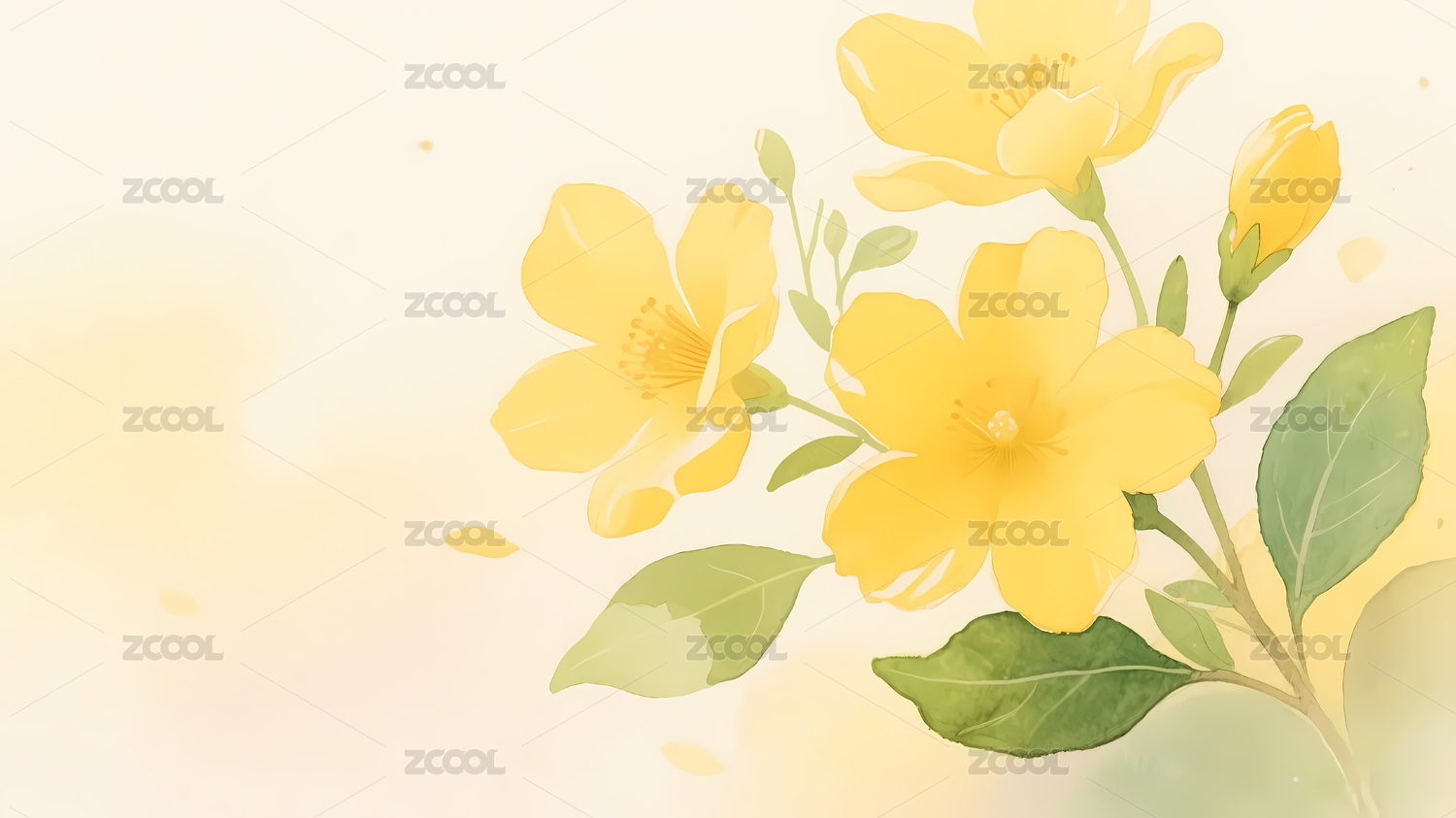 背景,绿色,黄色,小花,氛围,植物,渐变,自然,清新,柔和