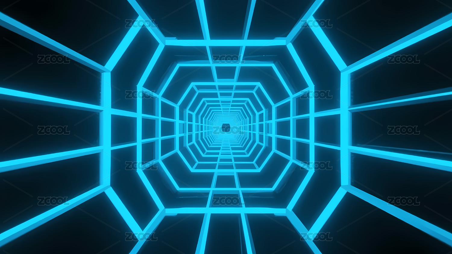 蓝色霓虹几何隧道