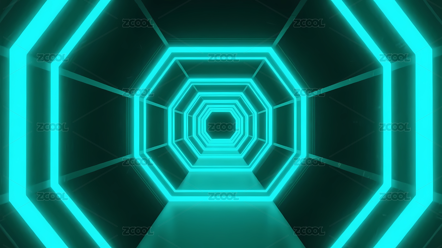 蓝色荧光八边形隧道