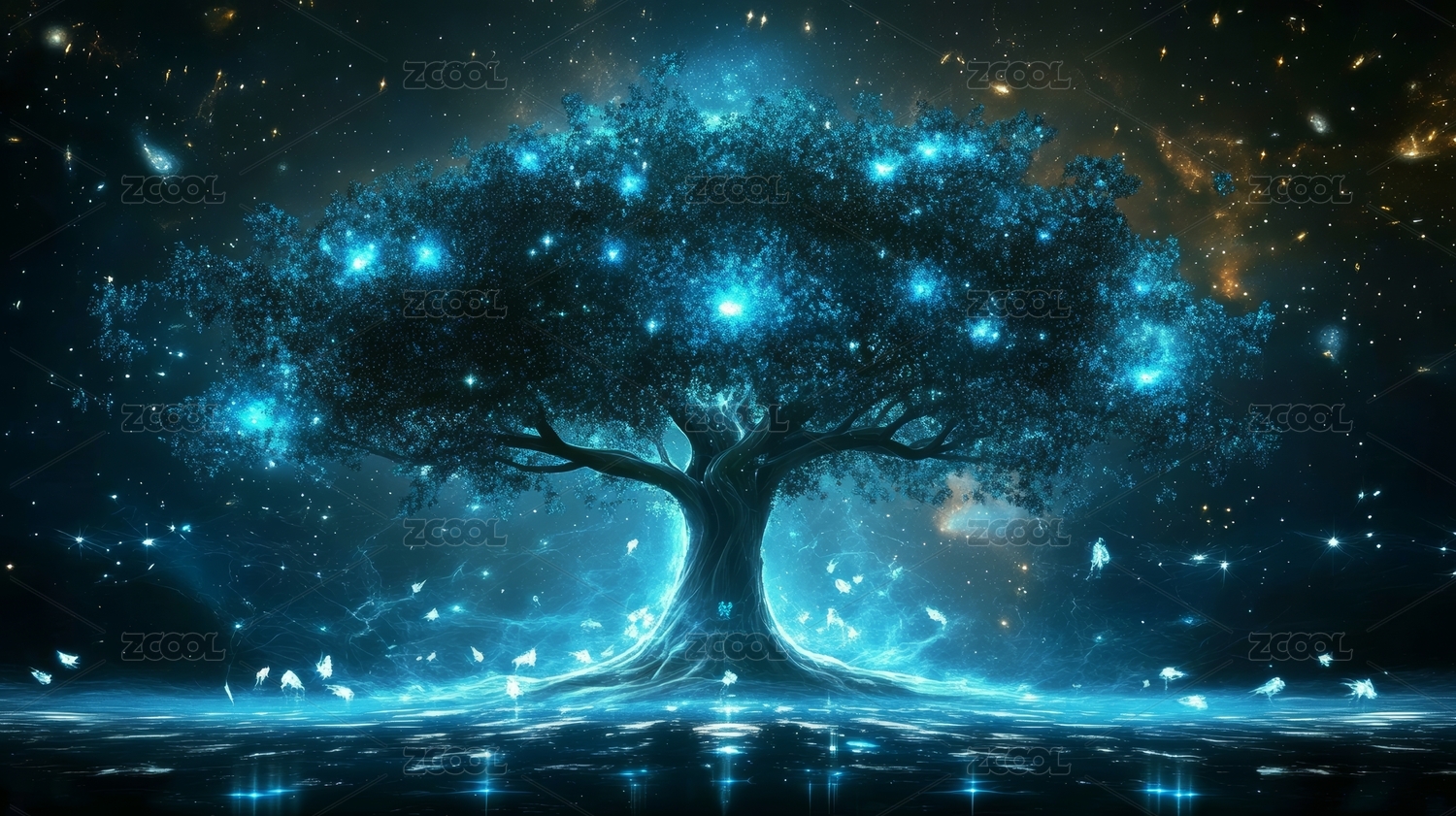 宇宙,树木,星空,光芒,蓝色,紫色,梦幻,抽象,能量,枝叶