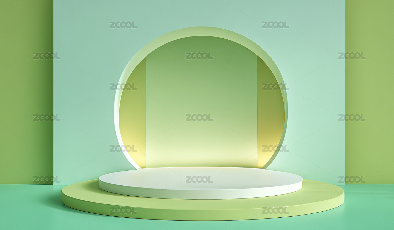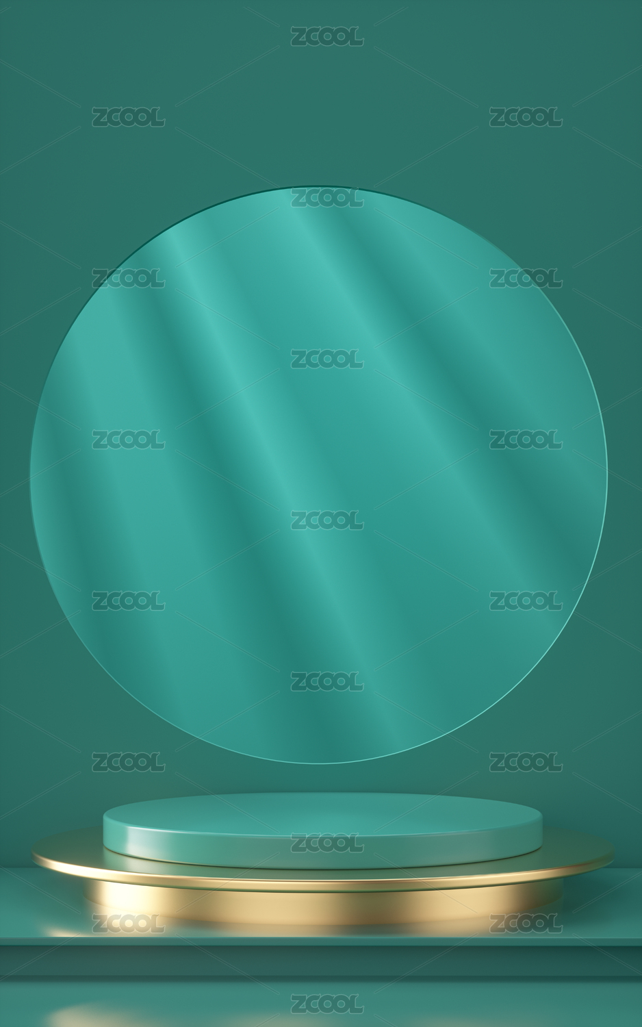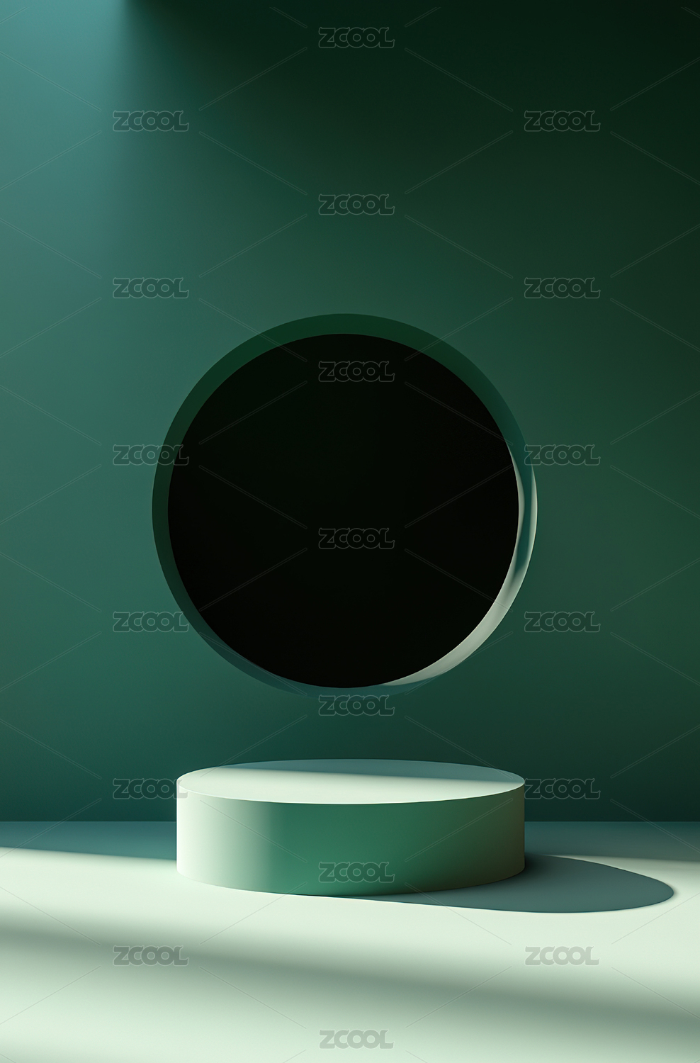金色圆环,绿色背景,圆柱体,简约设计,几何图形,现代艺术,立体感,光影效果,极简风格,抽象元素