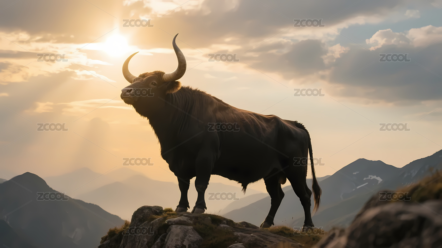 山顶公牛夕阳壮丽