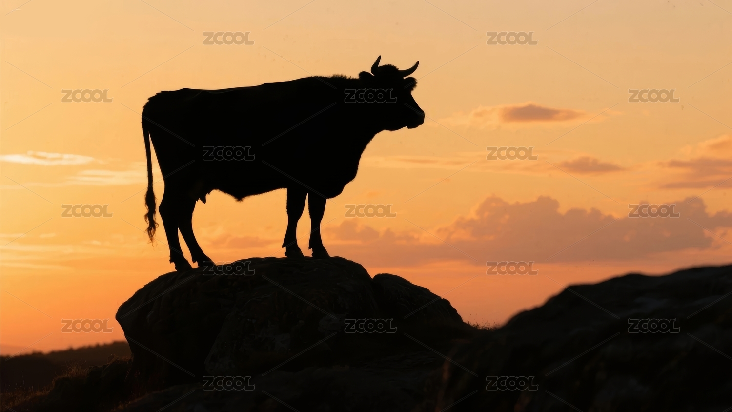 山脉夕阳岩石牛