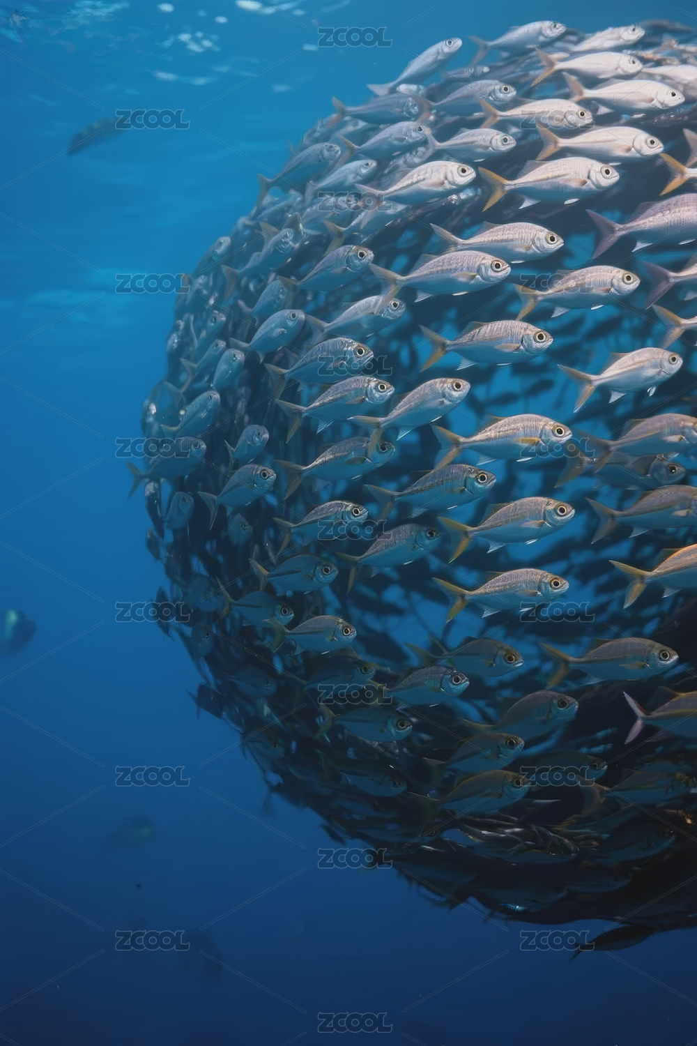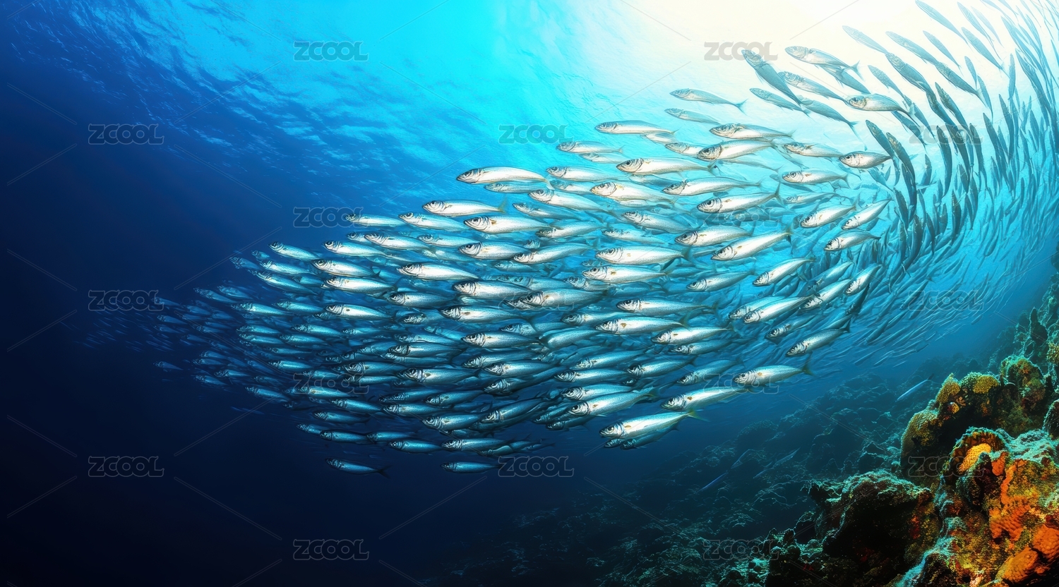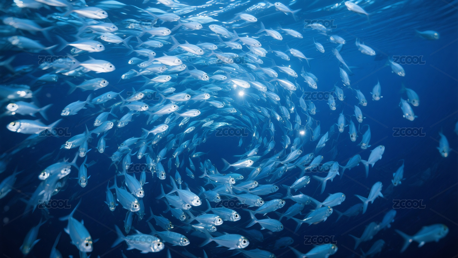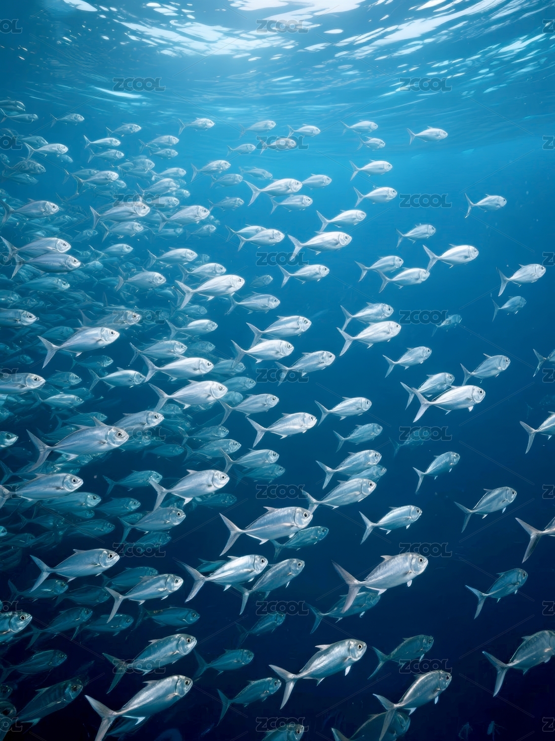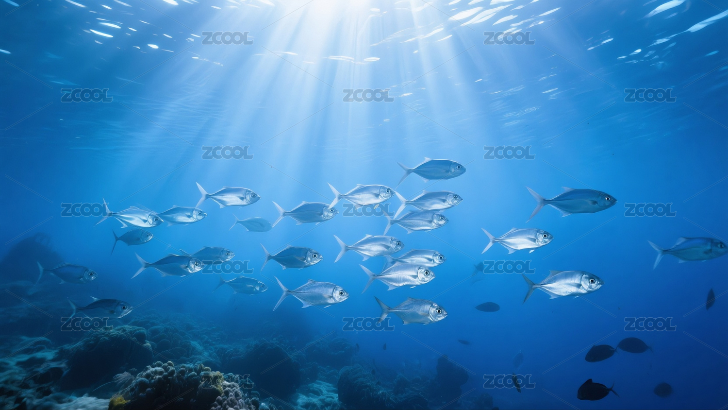 背景,自然,蓝色,深蓝,银色,鱼群,海水,游动,密集,清澈