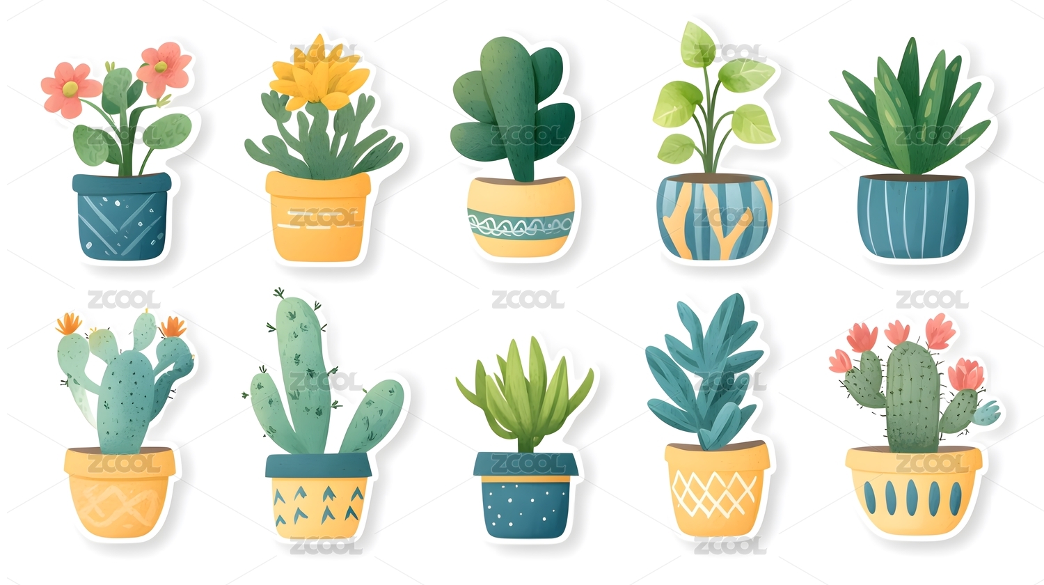 仙人掌,盆栽,多肉植物,植物,花卉,卡通,装饰,可爱,室内,园艺