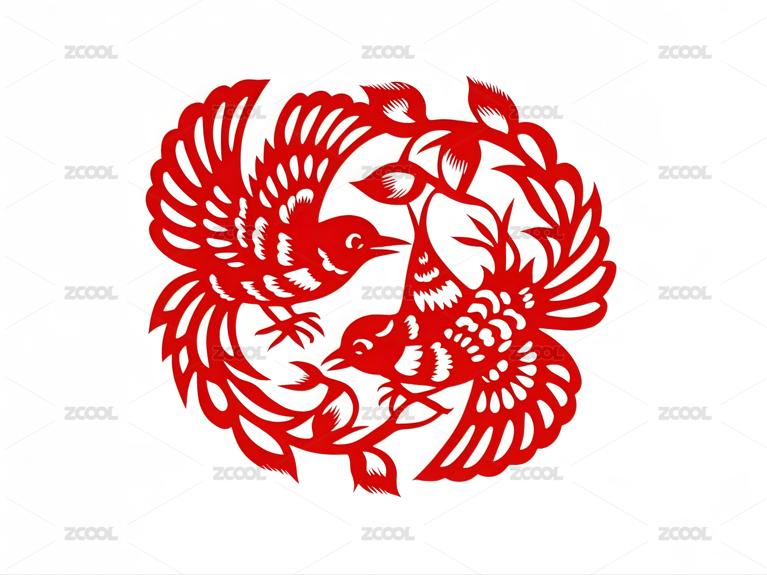 剪纸,红色,元素,素材,过年,凤凰,图案
