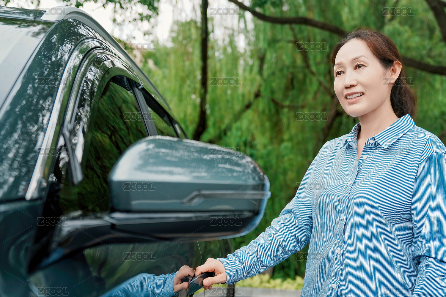 女子在户外开启车门