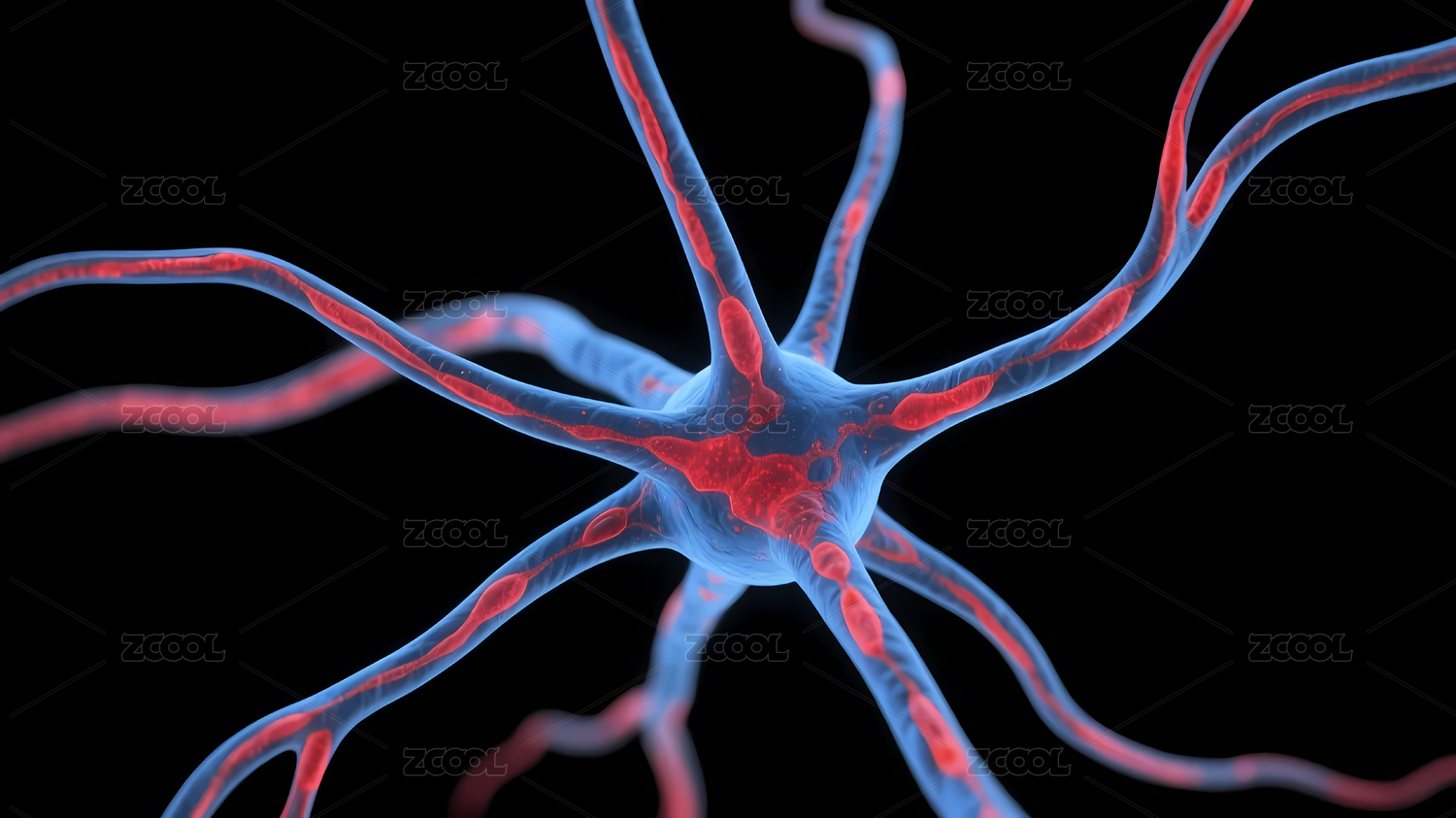 红色,背景,蓝色,黑色,神经元,交织,细胞,细节,色彩,对比