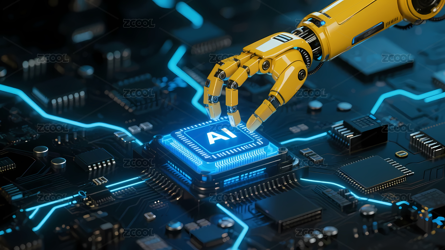 蓝色,未来,科技,发光,电路板,模糊,芯片,电子元件,机械臂,线路