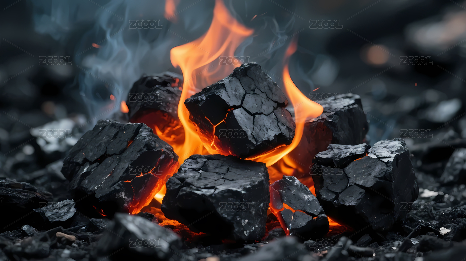 背景,明亮,黑色,对比,煤炭,燃烧,火焰,橙红色,环境,炭块