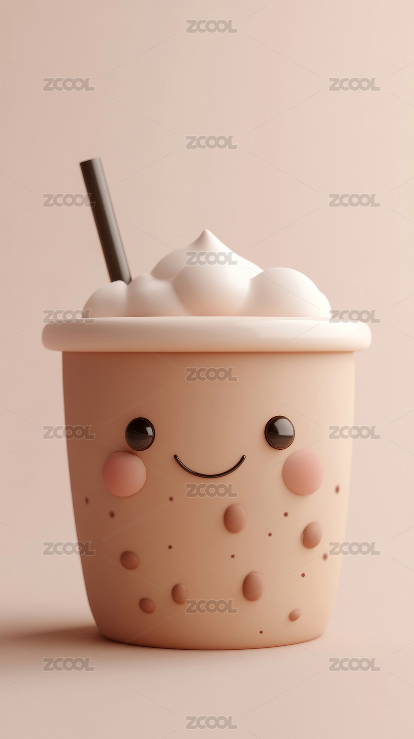 有一杯泡泡茶里面有吸管和黑色吸管高清图片