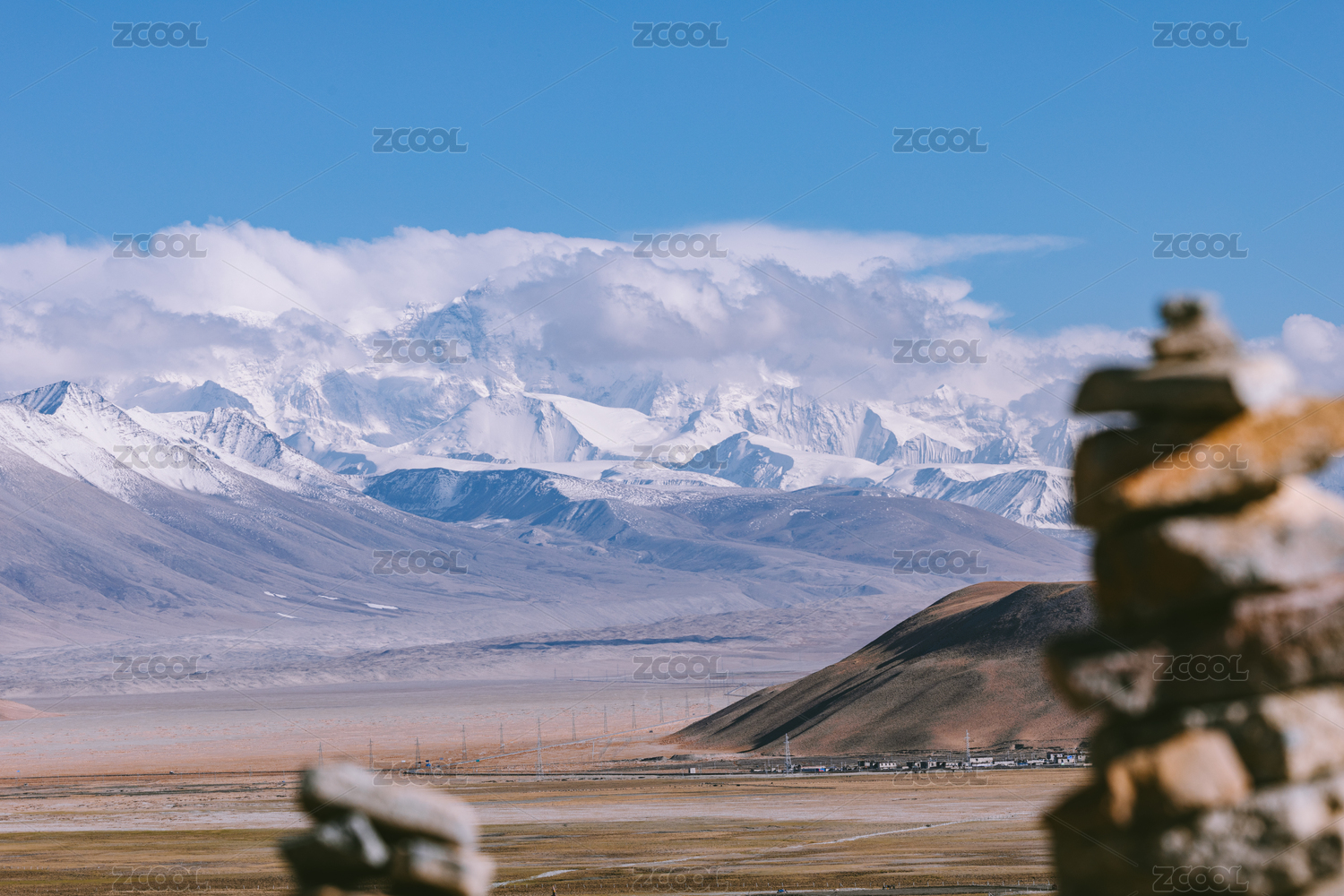 中国西藏定日县远眺喜马拉雅山脉