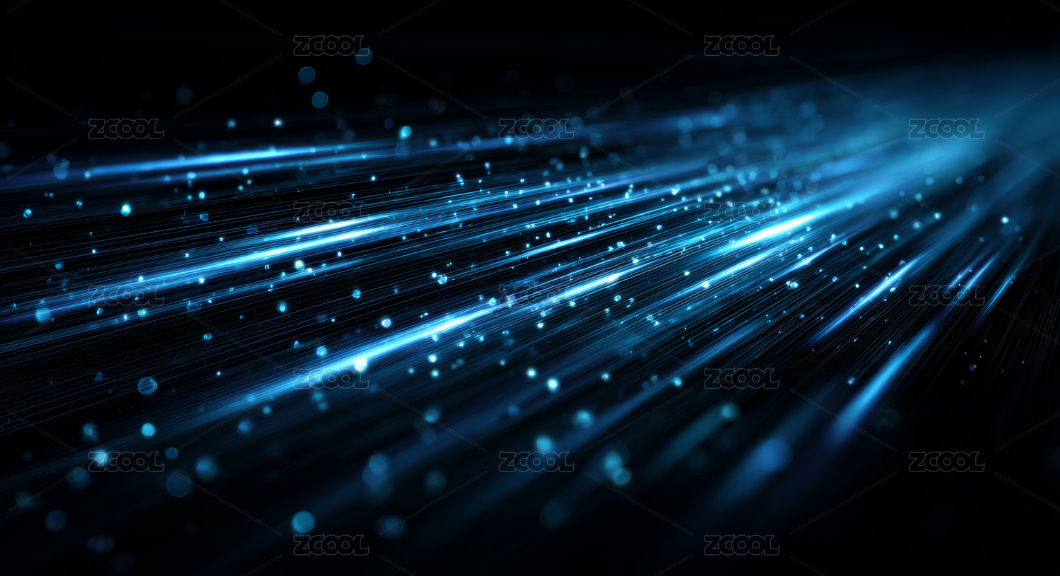 黑色背景下被照亮的蓝色光纤的特写镜头