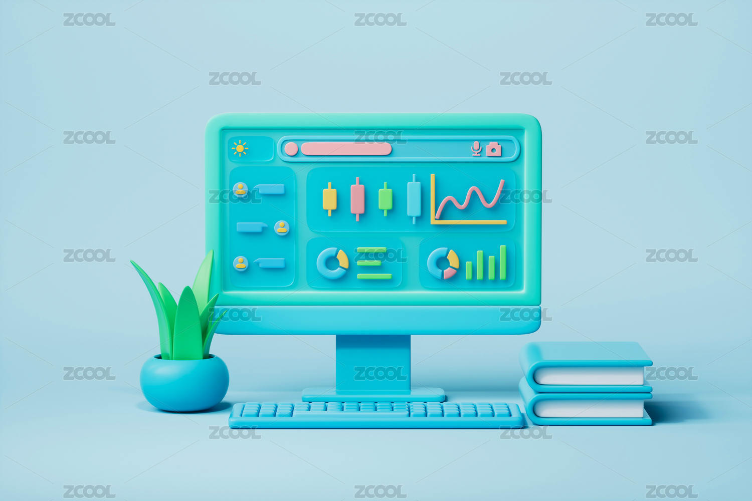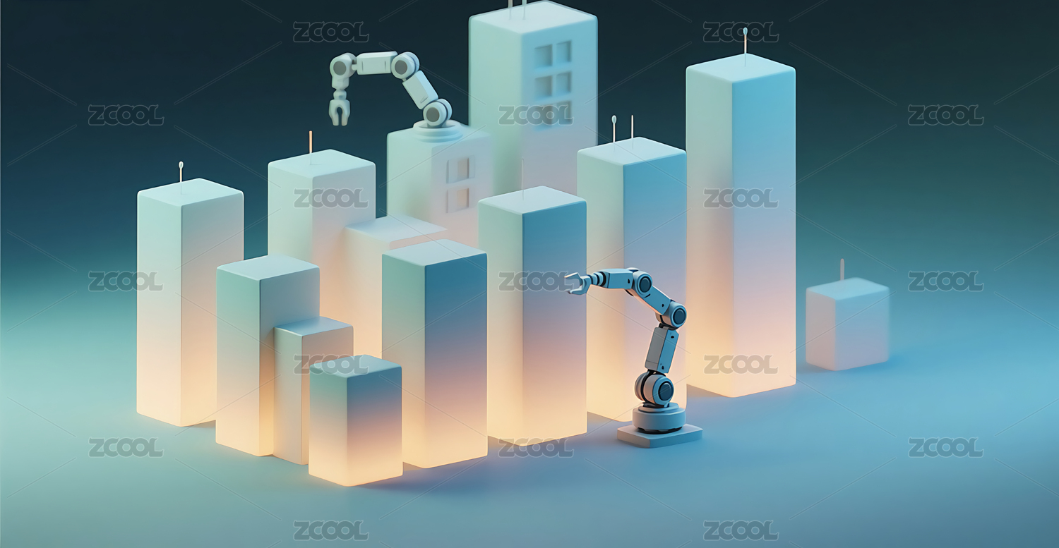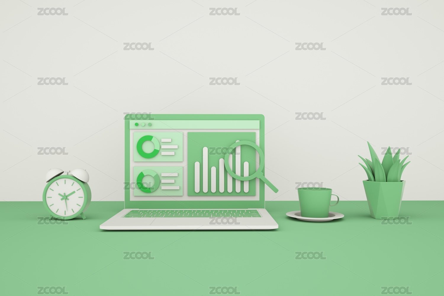 简约,办公,场景,创意,科技,数据,绿植,机器人,电脑,图表