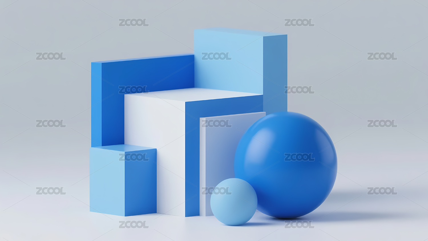 蓝白色几何立体场景