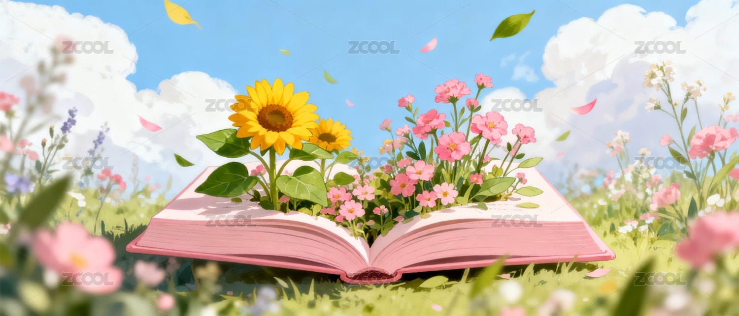 花海中的书本